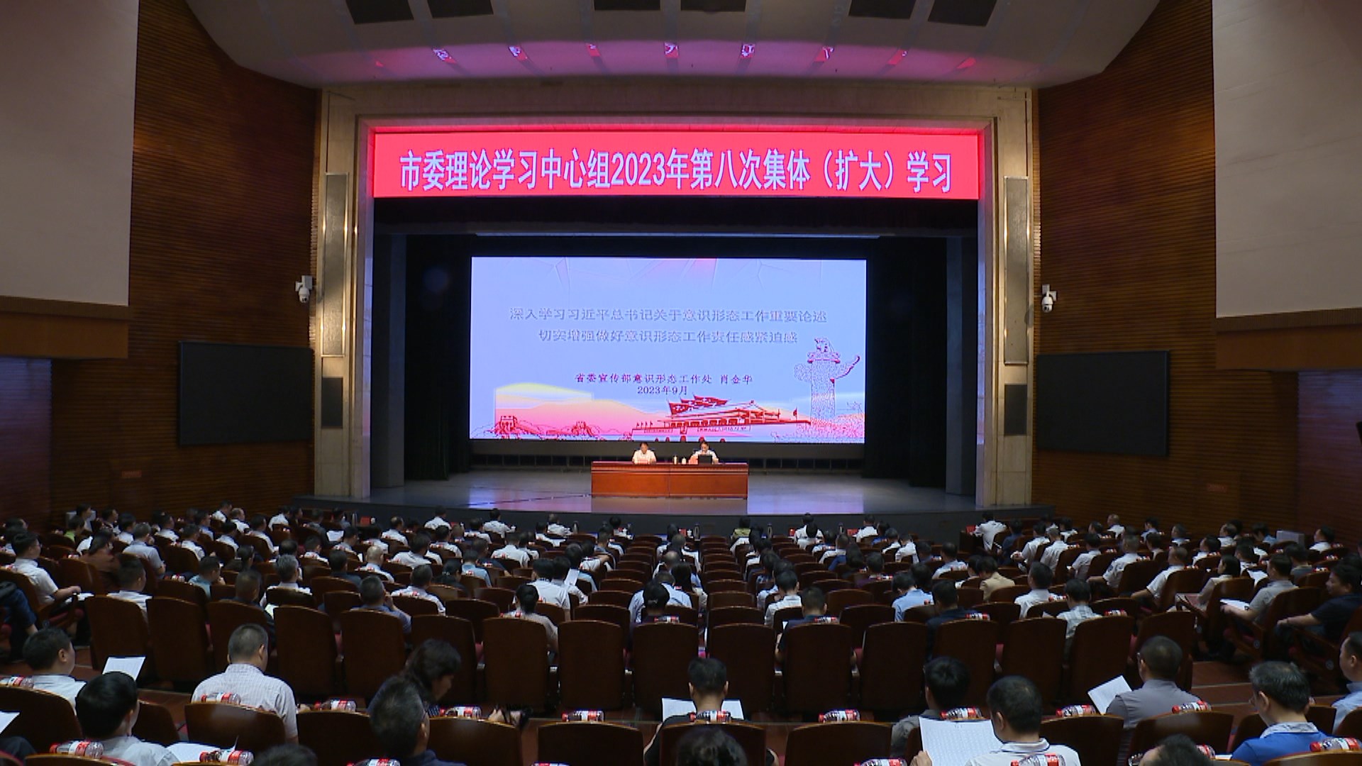 9月14日上午,市委理论学习中心组举行2023年第八次集体(扩大)学习。学习主题为:深入学习贯彻习近平总书记关于意识形态工作重要论述,切实增强做好意识形态工作的责任感紧迫感。市委书记曹普华主持并作总结讲话,强调要把牢意识形态“方向盘”,织密意识形态“安全网”,守好意识形态“主阵地”,种好意识形态“责任田”,为建设名副其实的省域副中心城市营造良好思想舆论环境。市委副书记、市长李挚,市领导马娜、黎作凤、刘启峰、谢群、李建华、谢运策、李美云等参加学习,省委宣传部意识形态工作处处长肖金华围绕学习主题作专题辅导报告。