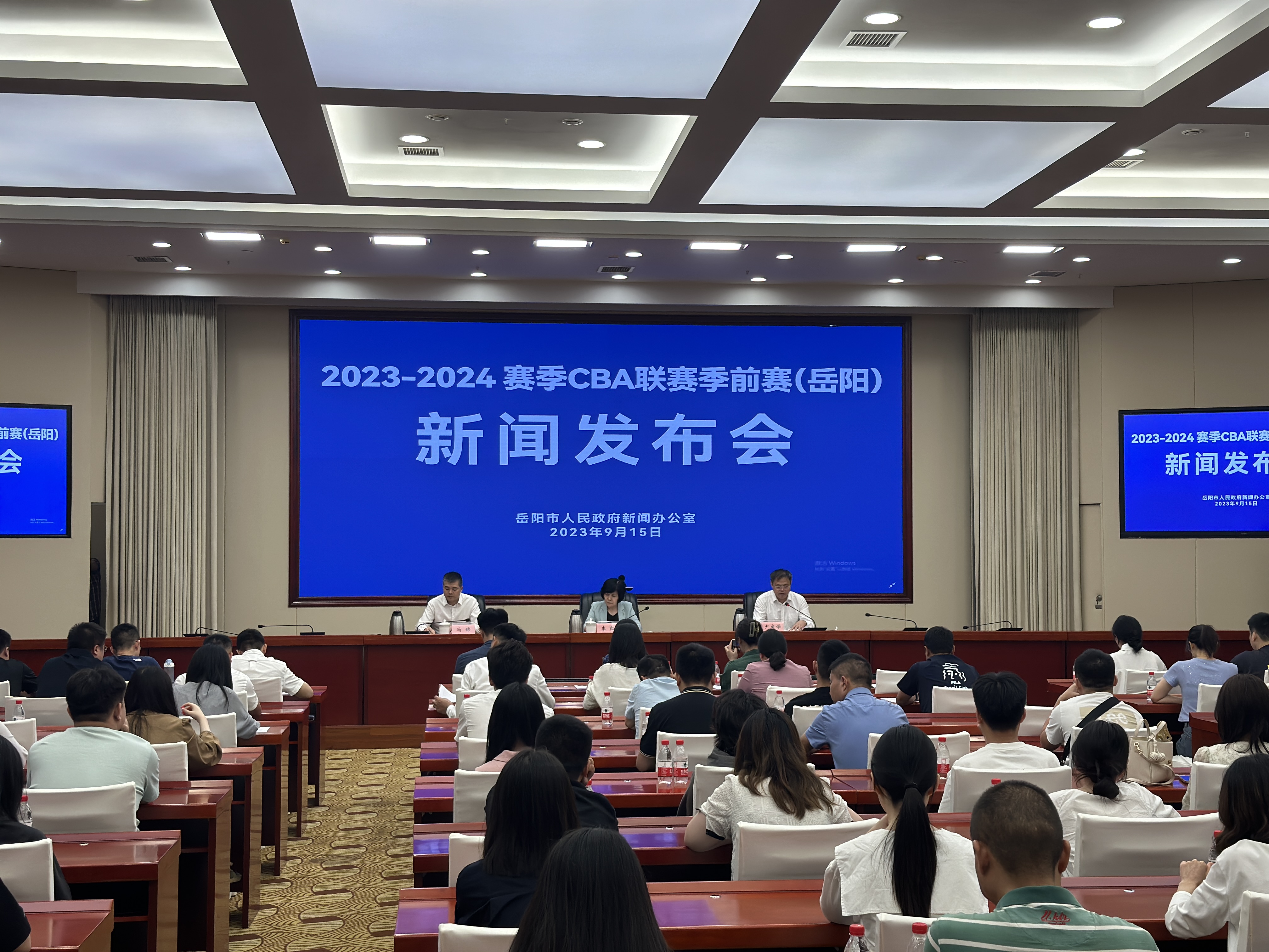 岳阳广电全媒体讯(记者 余佳敏 戴瑾)9月15日,岳阳市人民政府新闻办公室召开新闻发布会,确定2023-2024赛季CBA联赛季前赛(岳阳)将于10月13日-15日在岳阳奥体中心举行,三天内共上演六场比赛。参赛球队分别为广东宏远、龙狮、北京控股、江苏肯帝亚。市委宣传部副部长、市政府新闻办主任李红主持发布会,市教育体育局党组书记、局长尤庆学介绍了赛事基本情况。