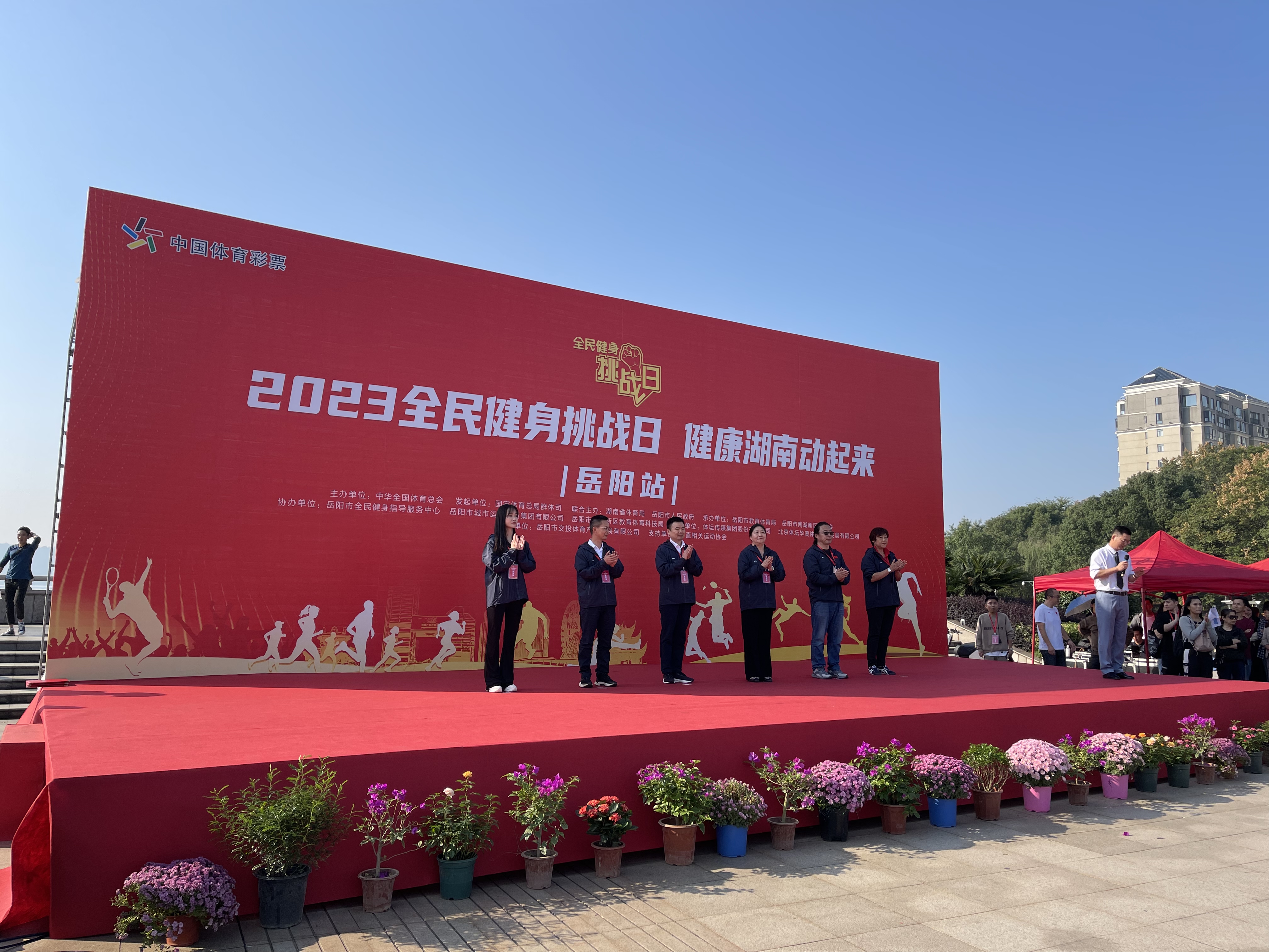 岳阳广电全媒体讯 今天,2023年全民健身挑战日健康湖南动起来(岳阳站)在南湖广场举行。本次活动由中华全国体育总会主办,市教体局、南湖新区管委会联合承办,岳阳市交投体育产业发展有限公司执行。省体育局群体处副处长张丕贤、市教育体育局副局长李永波、南湖新区党工委委员、管委会副主任冯建军、北京体坛华奥体育文化发展有限公司副总经理姚昆、市教文公司总经理付娅、岳阳健康达人、亚运会皮划艇冠军文艳芳出席开幕式。
