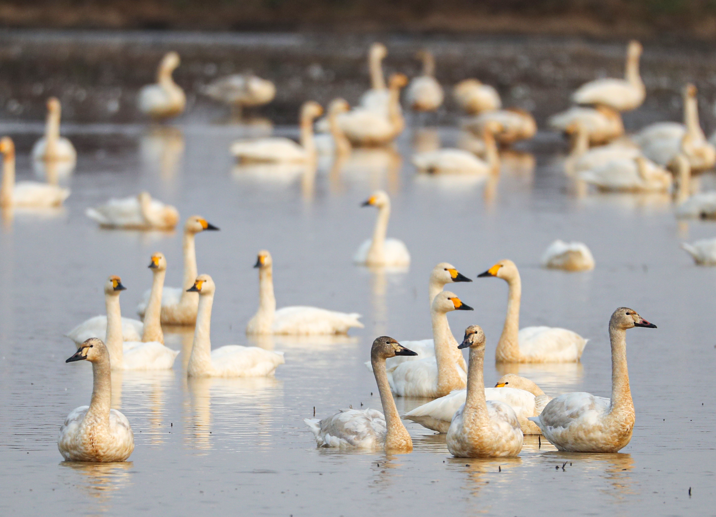 从十月中旬以来,位于东洞庭湖区的屈原管理区境内,就已经观测到小批量的白鹤、小天鹅、鸬鹚、雁鸭等候鸟。10月29日屈原融媒体中心记者就在东古湖拍摄到60多只小天鹅,在距东古湖约5公里的凤凰乡磊石村拍摄到20多只灰鹤在稻田悠闲觅食,其中一只东方白鹳隐匿在灰鹤群中。还有距东古湖约3公里的荞麦湖观测到雁鸭、鸬鹚、黑水鸡、白琵鹭等候鸟。