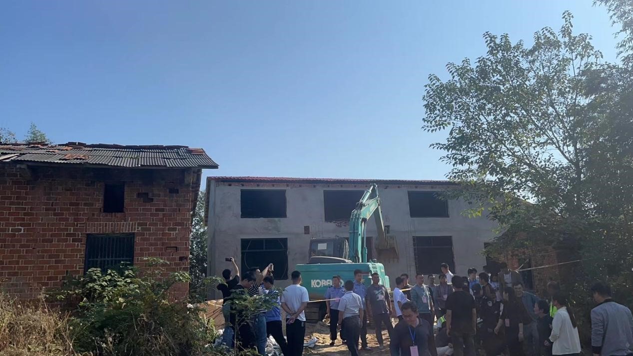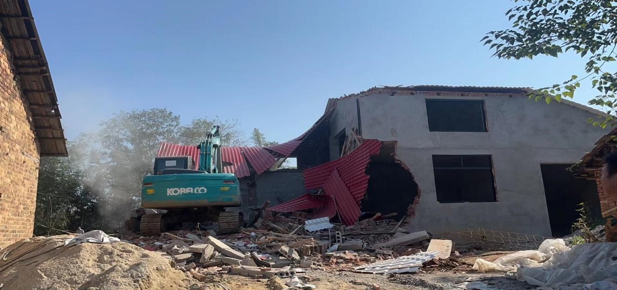 执法人员拉起警戒线,建立隔离带,劝离围观人群,腾挪附近车辆。施工人员将违建房中堆放的杂物等搬离腾空,在确认周边环境安全后,通过挖掘机作业,平安有序拆除了该违法建筑。