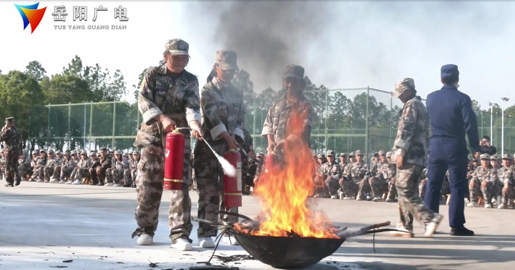 下午三点半,在岳阳市学生军校一场户外消防演练正在进行中,岳阳楼区消防官兵向师生讲解灭火器类型及如何使用灭火器,并进行了现场灭火演示。部分学生根据官兵的讲解及演示,亲身体会一次使用灭火器进行灭火。
