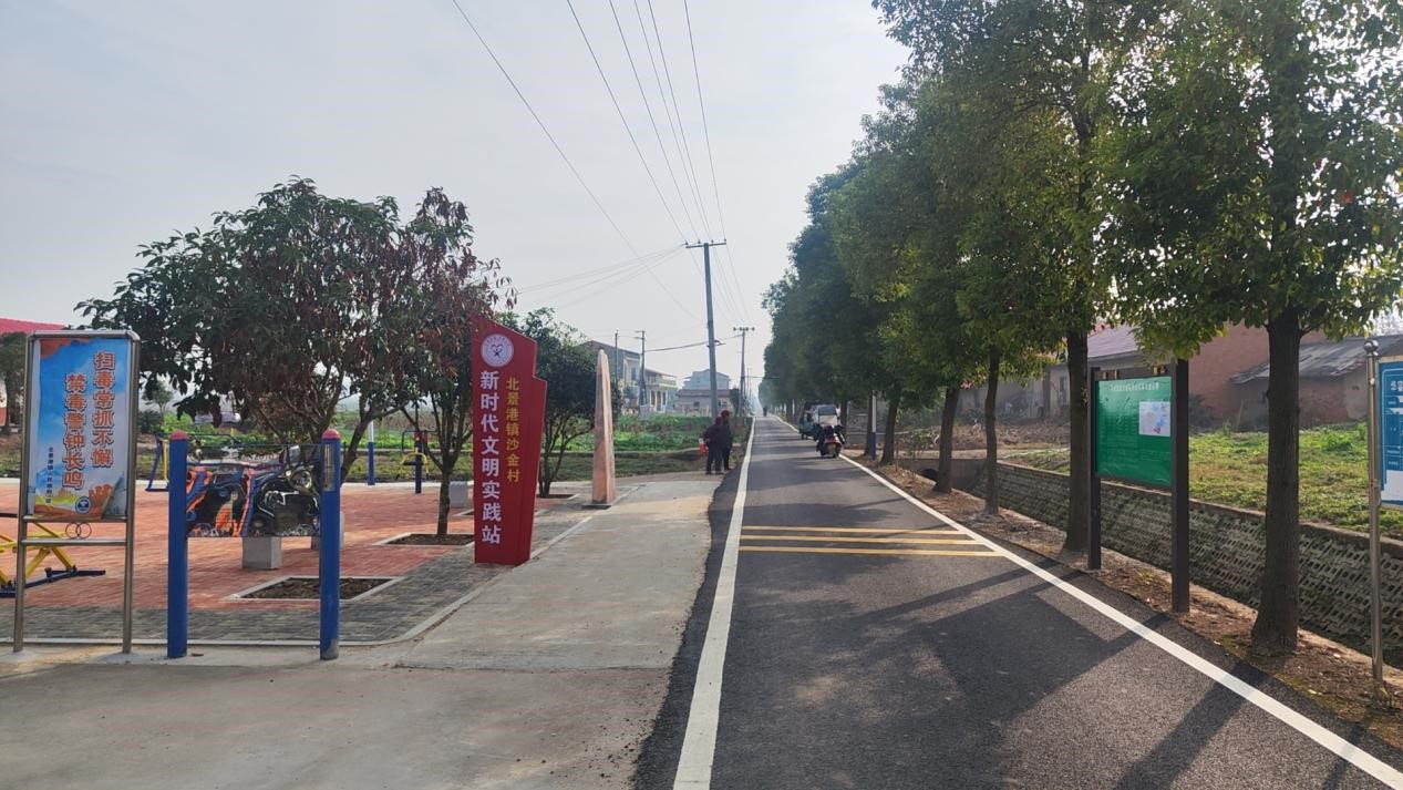 走进北景港镇沙金村,只见四通八达的通村公路蜿蜒伸展,清澈见底的河水静静流淌,整个村庄在阳光下显得格外醒目。