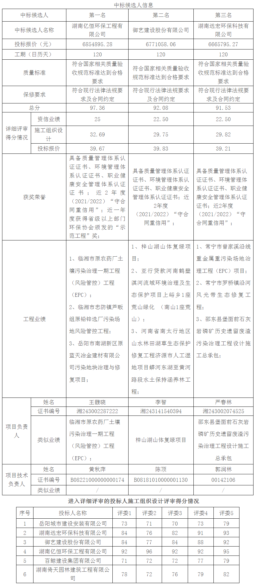 根据招标投标相关法律法规及招标文件的规定,洞庭湖区域长江岸线候鸟栖息地生态保护与修复工程(2024)评标工作已经结束,本项目采用综合评估法,评标委员会推荐了以下3名中标候选人(排序),现将相关信息予以公示。公示期2023年12月6日至2023年12月11日。