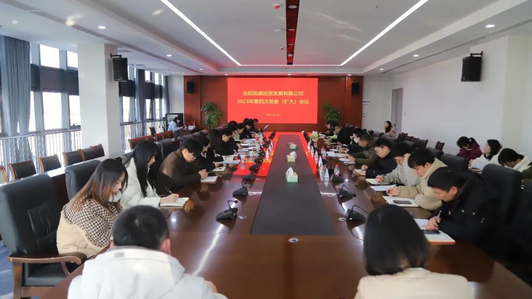 岳阳广电全媒体讯 12月22日,岳阳观盛投资发展有限公司2023年第四次党委(扩大)会议召开。观盛公司党委书记、董事长颜劲松、公司党委副书记、总经理易兴,及公司全体党委班子成员、党支部书记、第一支部全体党员、各相关部门负责人参加会议。