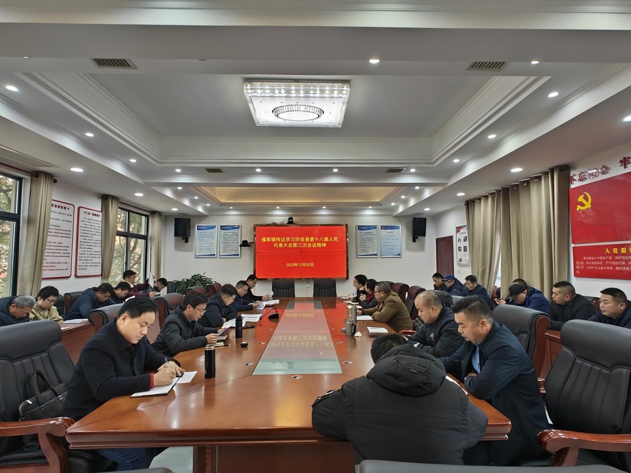 岳阳广电全媒体12月26日讯(记者/余小满 通讯员/刘陈)12月25日,华容县操军镇召开传达学习全县“两会”精神专题会议,镇全体党政负责人、机关干部,部分县乡人大代表、政协委员,站所负责人共50多人参会。