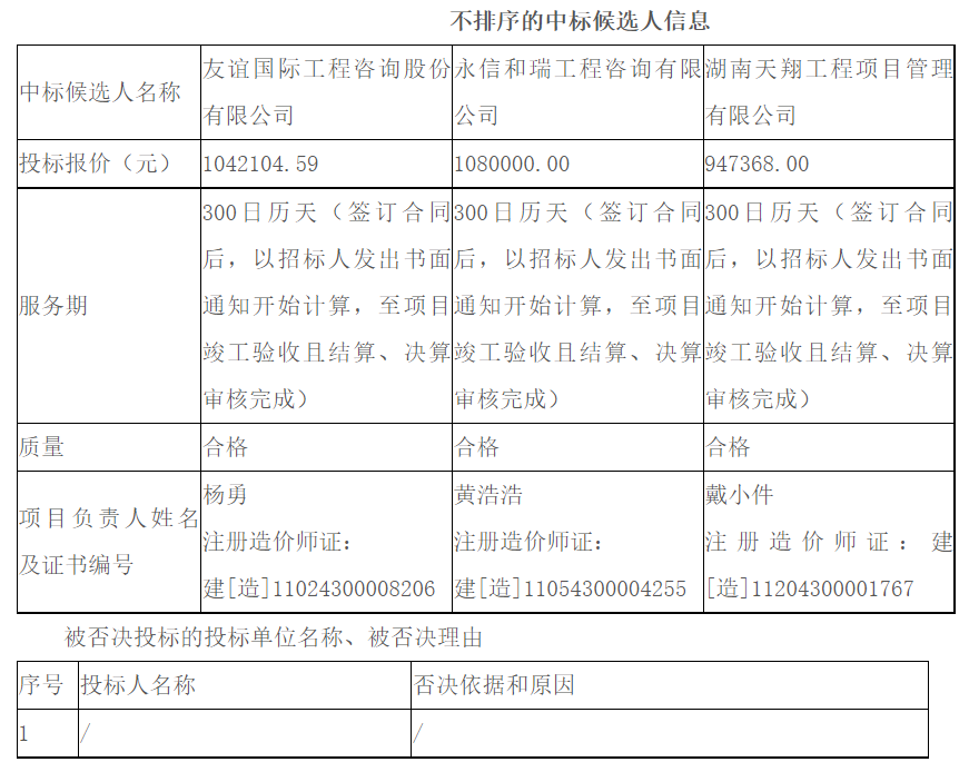 公示期间,投标人和其他利害关系人如有异议,应按照《工程建设项目投标活动投诉处理办法》、《湖南省招标投标活动投诉处理办法》提出。公示期届满时,对以上中标候选人若无异议,招标人即依据招标文件规定的定标原则确定本项目的中标人。