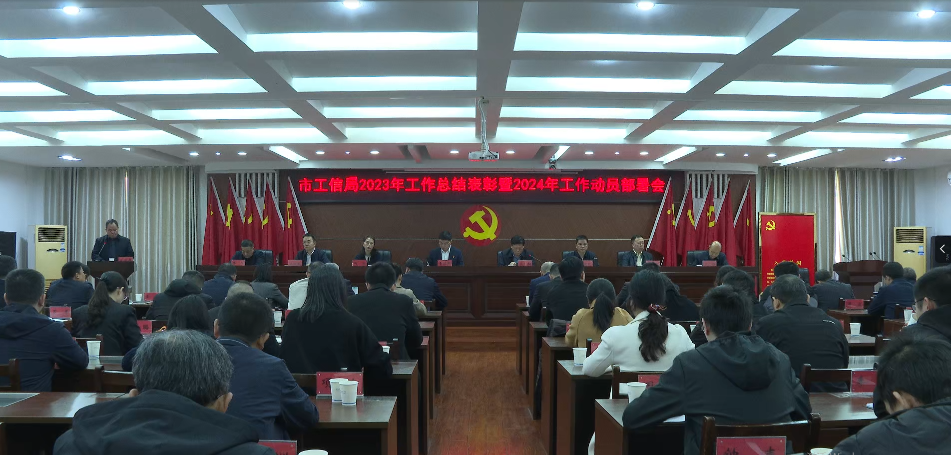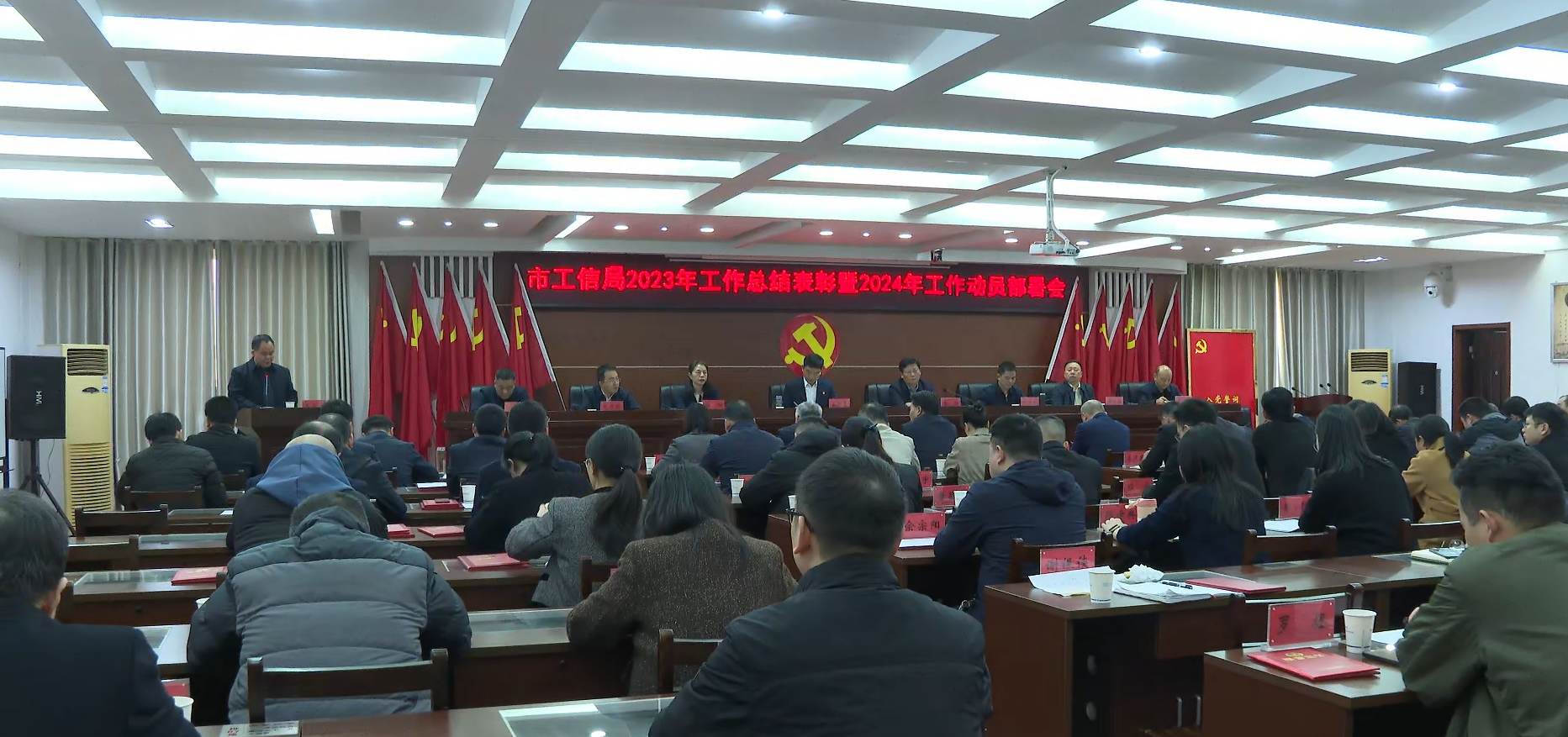 一年春作首,万事干为先。随后召开的2023年度工作总结表彰暨2024年工作动员部署大会表彰了先进科室(单位)和先进个人,市工信局党组书记、局长曹冠军对2023年工作进行回顾总结,对2024年工作进行全面安排部署。