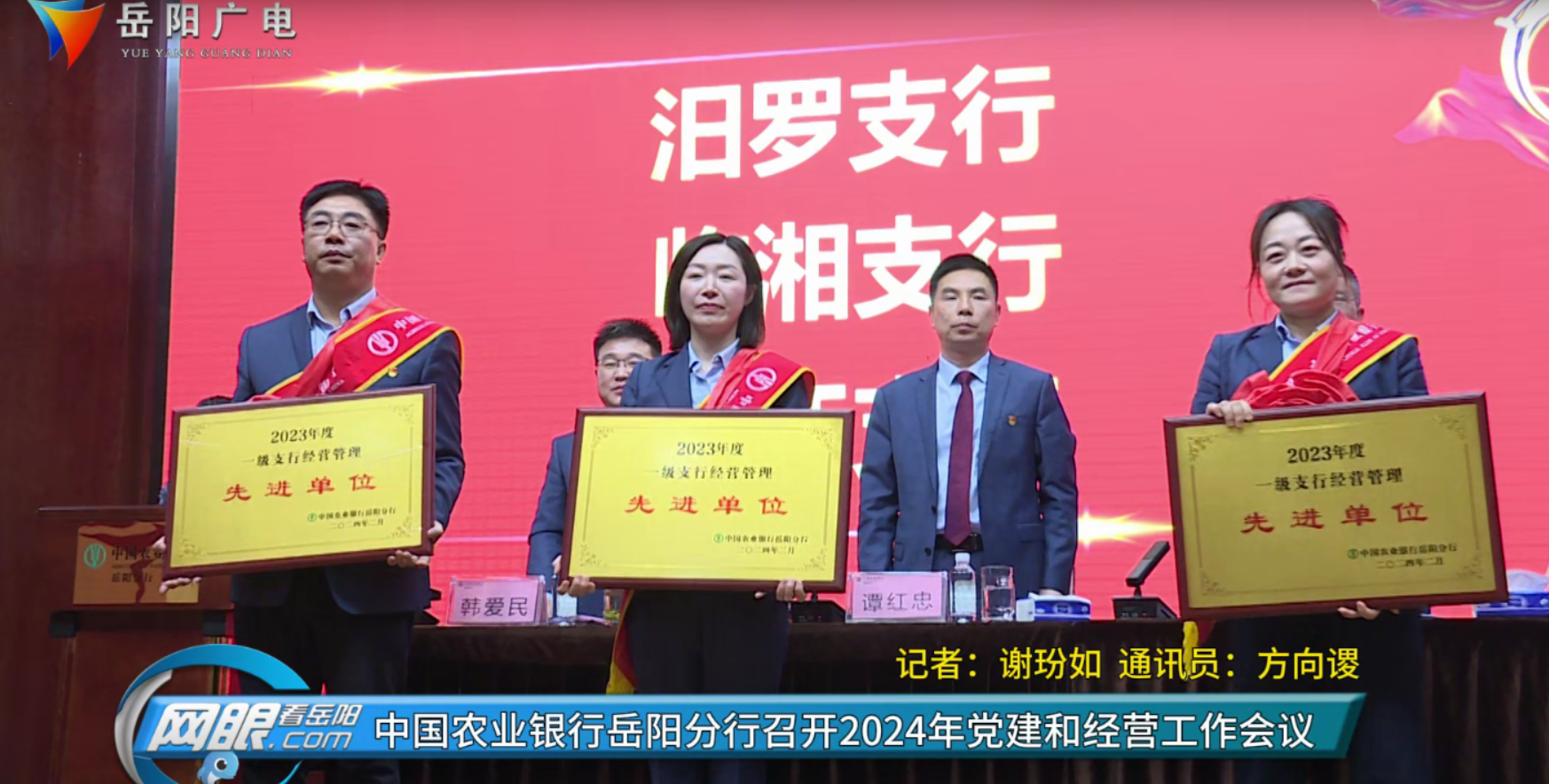 会议对2023年度全市农行系统先进集体、先进个人进行了表彰并颁奖;岳阳县支行、湘阴支行、汨罗支行、平江长寿支行负责人进行了经验交流发言;各支行主要负责人递交了《2024年相关工作责任书》;2024年“春天行动”启动以来营销业绩突出的支行和条线部门主要负责人向大会进行了业绩报喜。