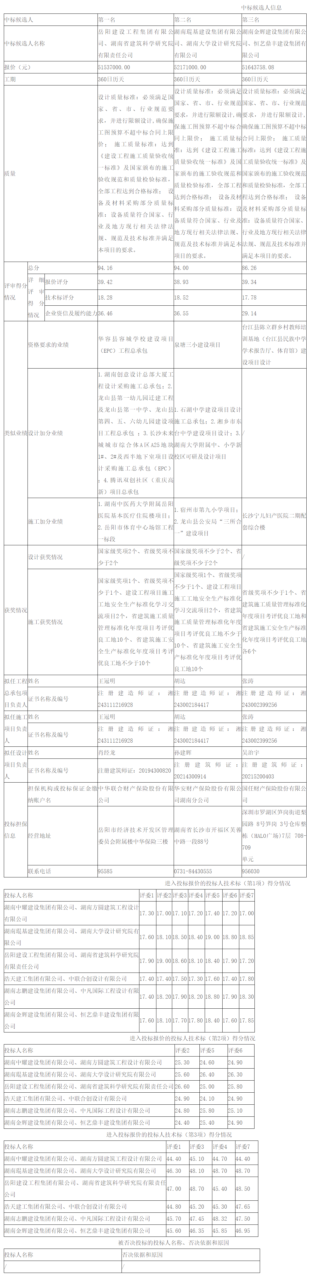 根据招标投标相关法律法规及招标文件的规定,岳阳市城乡物流基础设施建设项目(岳阳县—荣家湾冷链等四级物流配送网络)工程总承包第二标段评标工作已经结束,本项目采用“综合评估法”的评标办法,评标委员会推荐了以下3名中标候选人(不排序),现将相关信息予以公示。公示期2024年3月5日至2024年3月8日。
