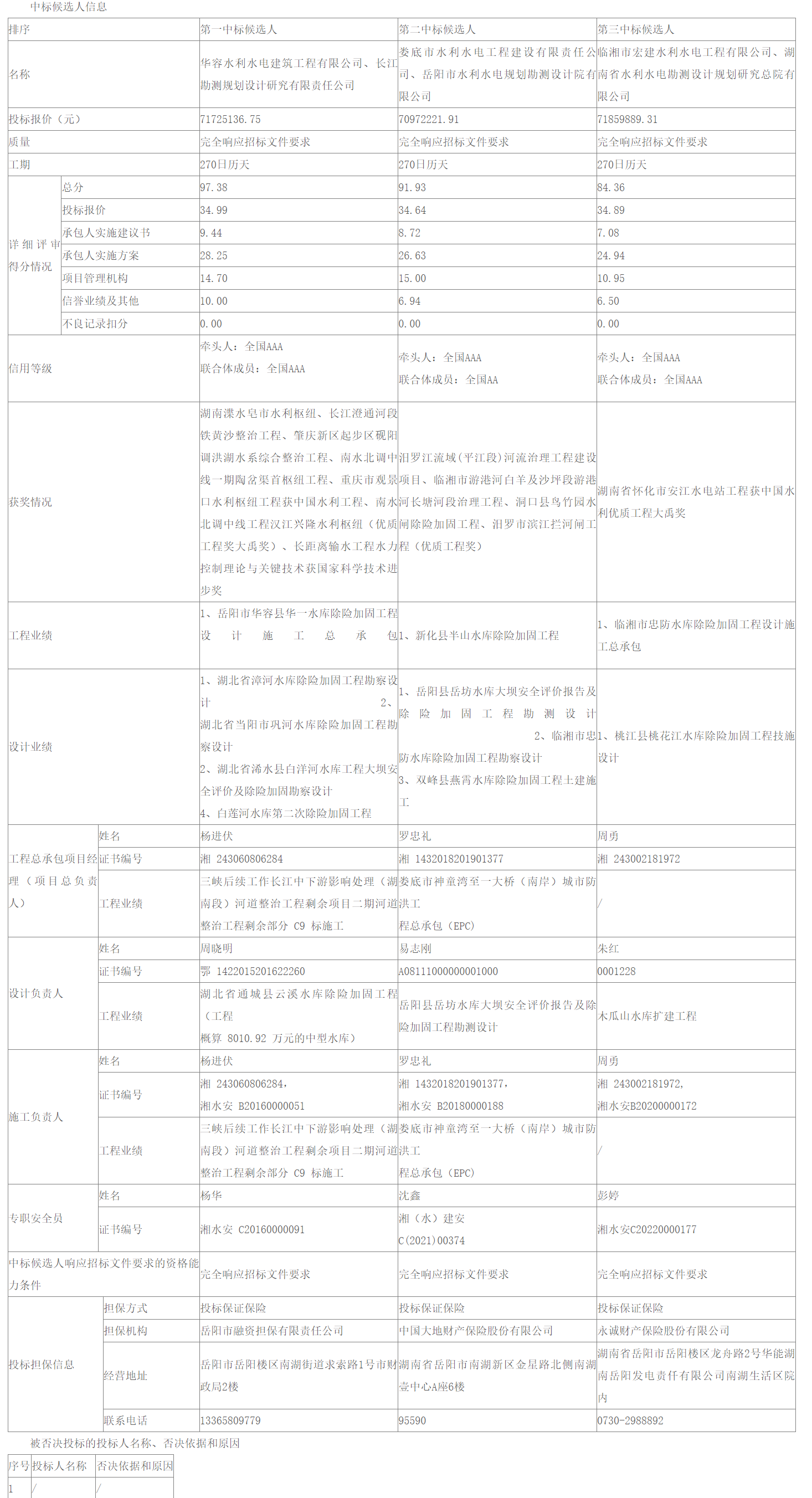 根据招标投标相关法律法规及招标文件的规定,湖南省华容县北汊水库除险加固工程评标工作已经结束,本招标项目采用综合评估法评标定标,评标委员会推荐了以下3名排序中标候选人,现将相关信息予以公示。