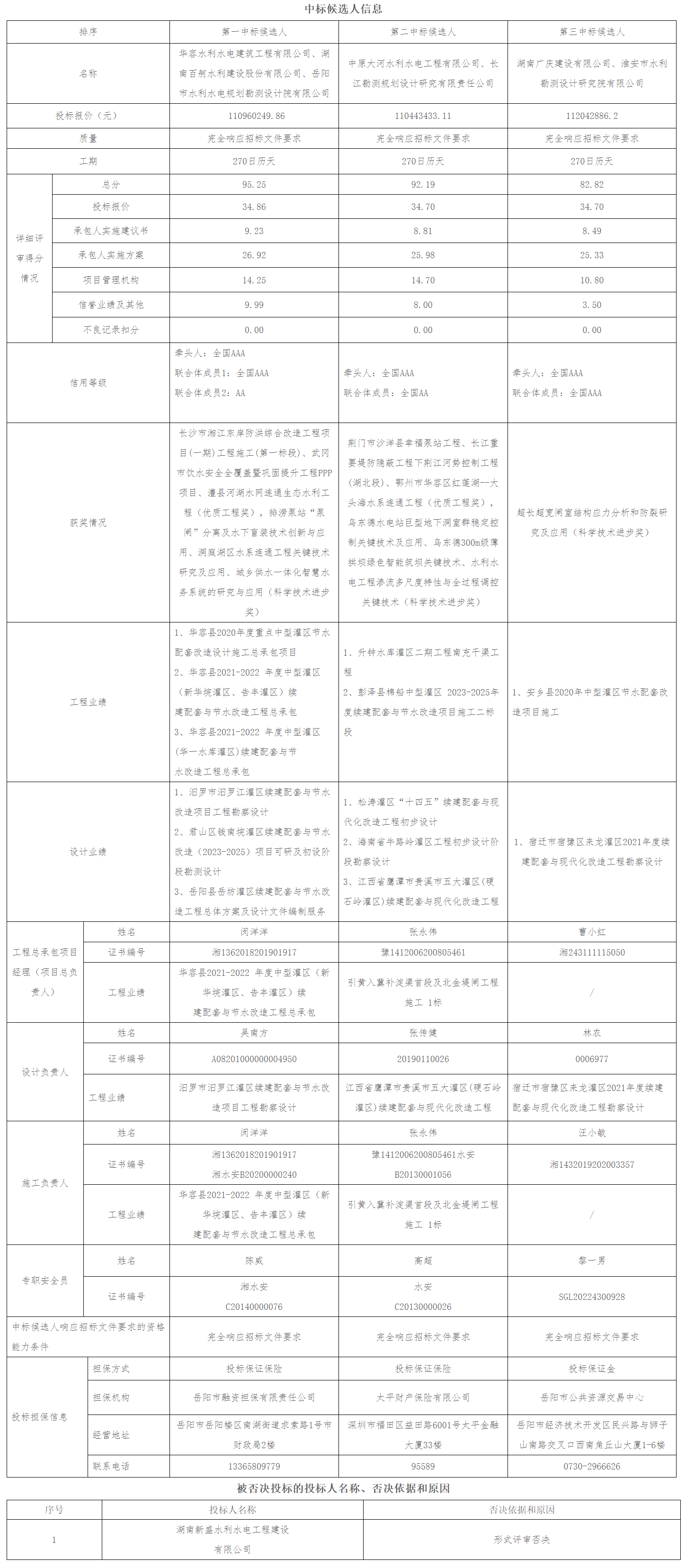 根据招标投标相关法律法规及招标文件的规定,岳阳市华容县北汊水库灌区续建配套与节水改造(2024年)项目评标工作已经结束,本招标项目采用综合评估法评标定标,评标委员会推荐了以下3名排序中标候选人,现将相关信息予以公示。