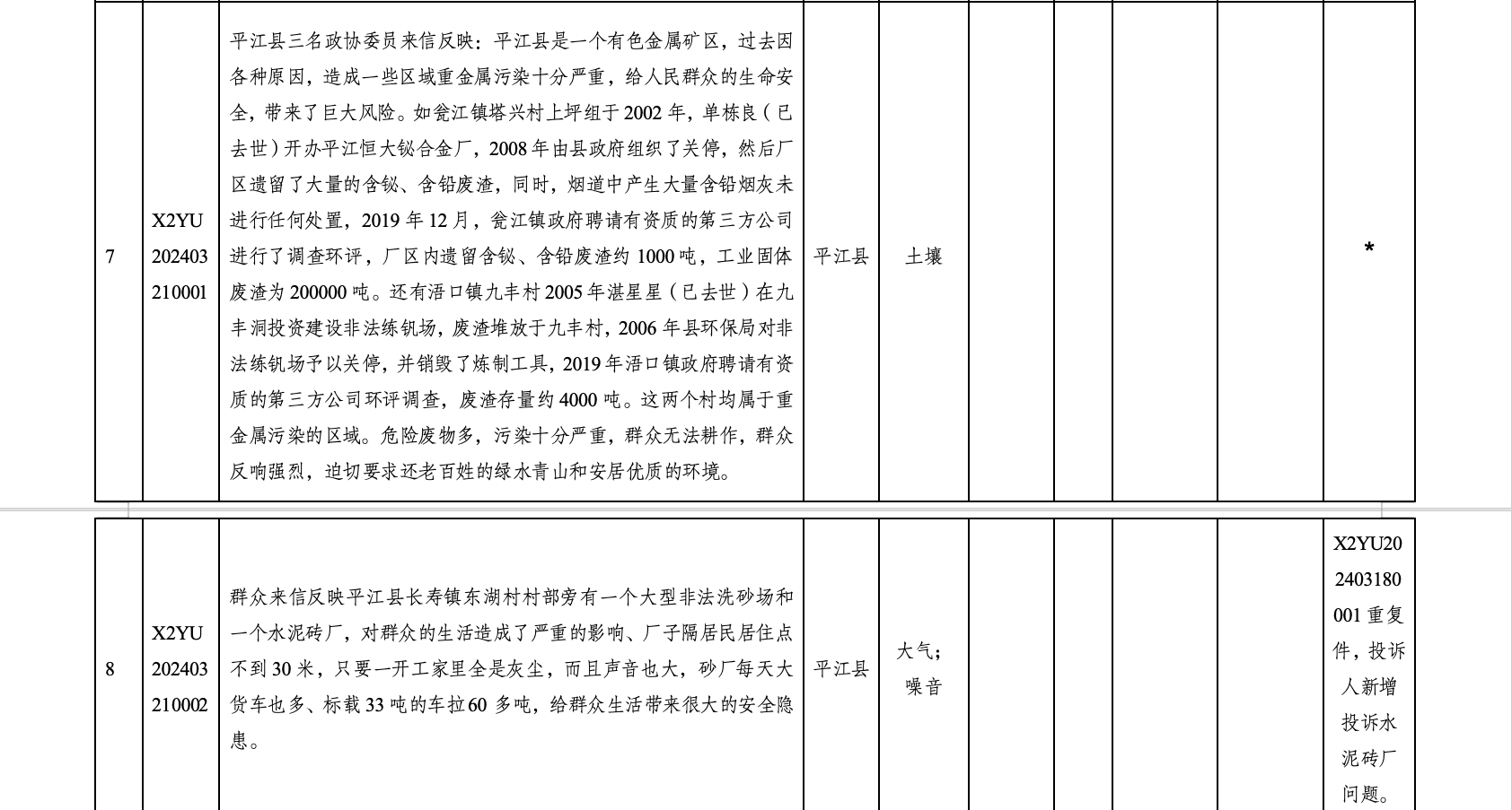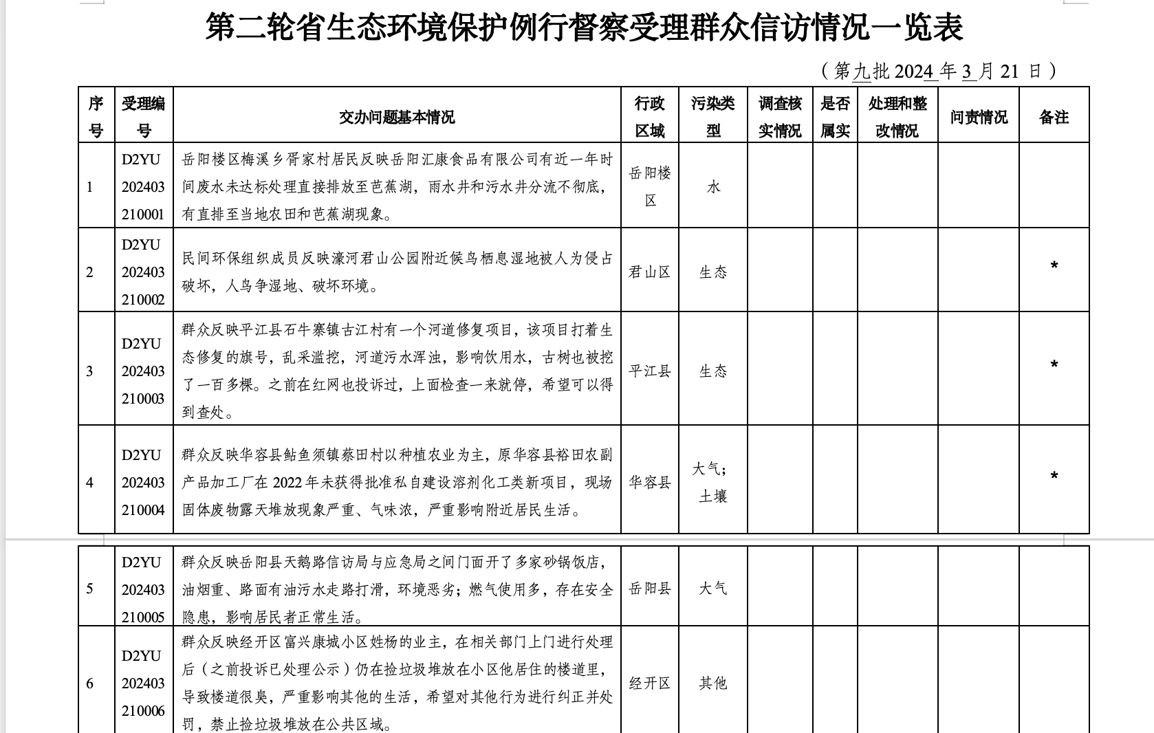 第二轮省生态环境保护例行督察受理群众信访情况一览表