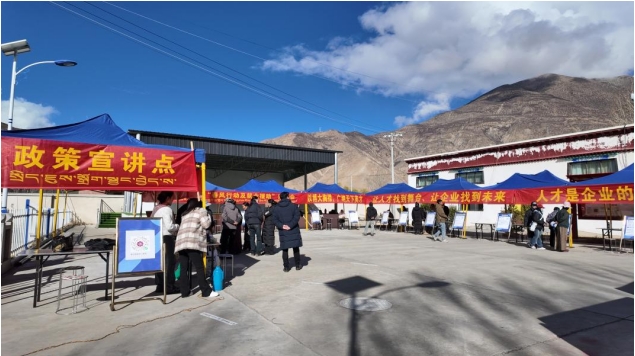 招聘会在桑日县增期乡雪巴村、白堆乡、桑日镇雪巴社区、绒乡巴朗村委会设立了分会场。活动现场,工作人员耐心细致向求职者讲解企业、岗位信息和区外就业等相关惠民政策。