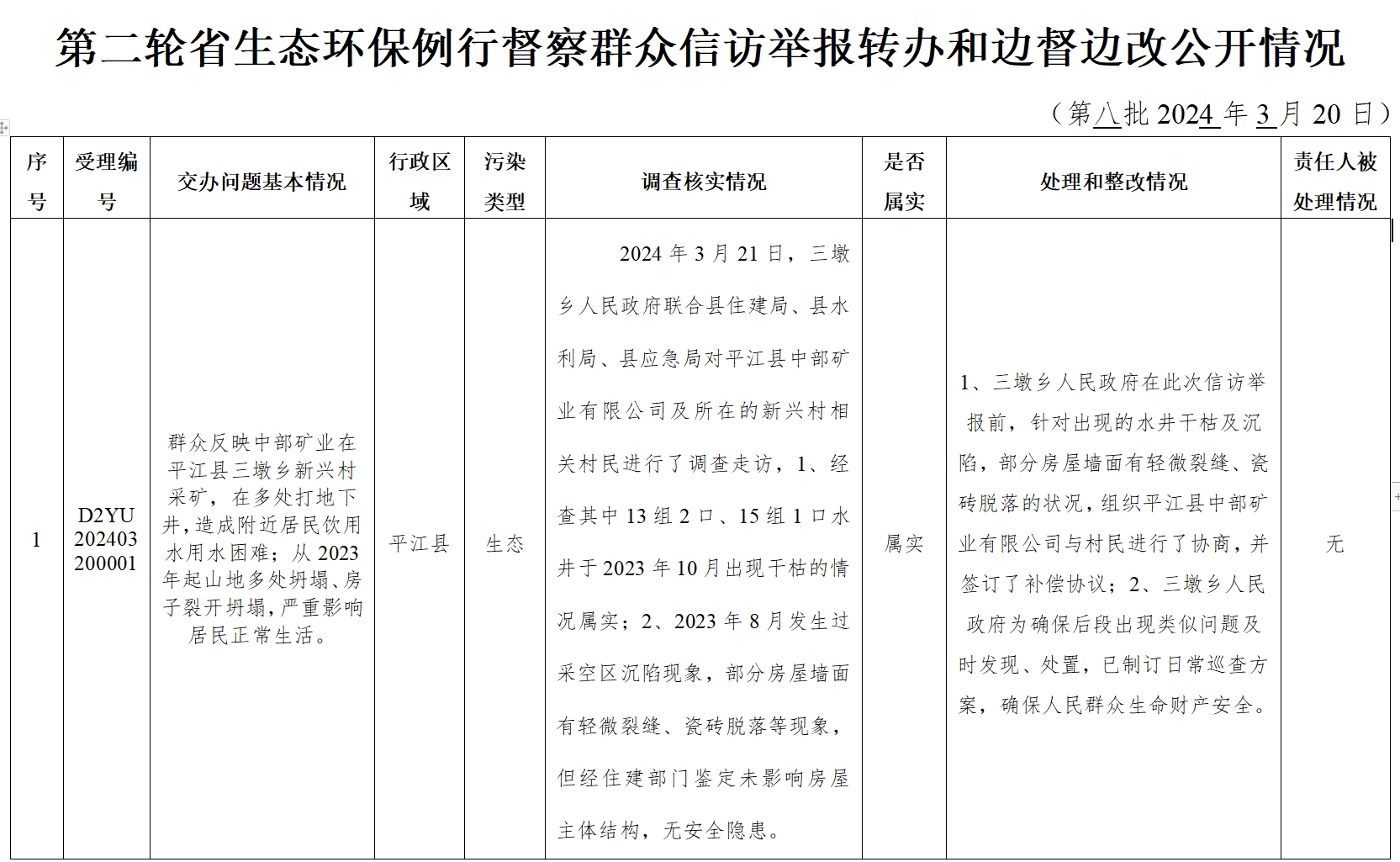 第二轮省生态环保例行督察群众信访举报转办和边督边改公开情况
