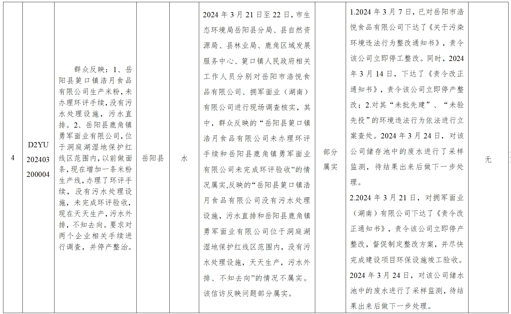 第二轮省生态环境保护例行督察受理群众信访情况一览表