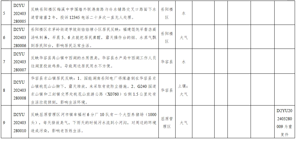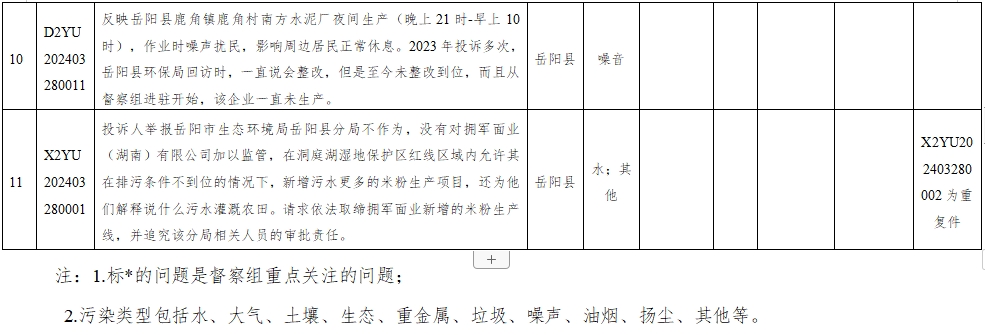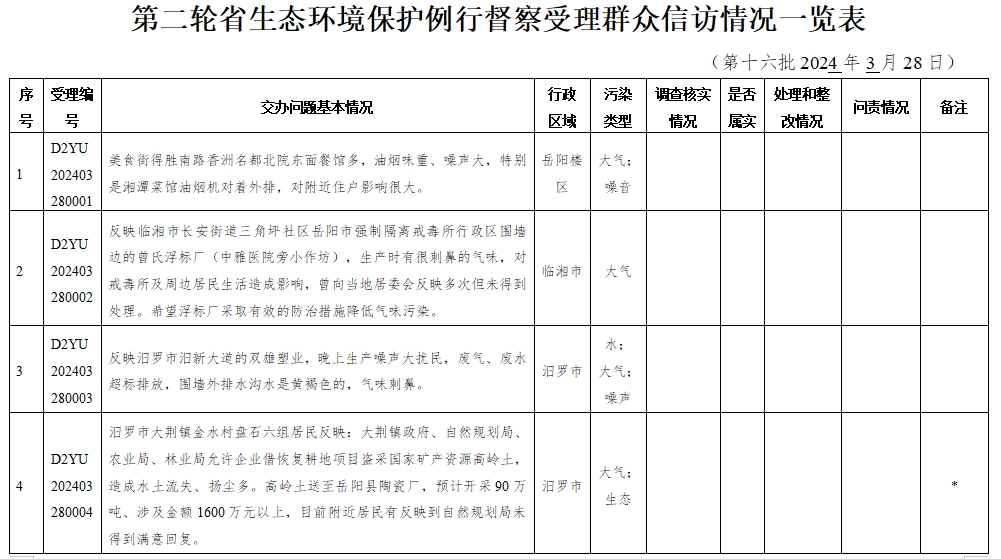 第二轮省生态环境保护例行督察受理群众信访情况一览表