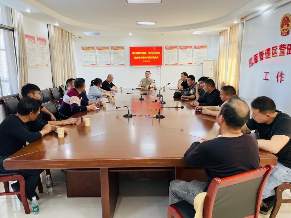 岳阳广电全媒体讯(通讯员/夏顺益)3月29日,屈原管理区营田镇召开集中育秧、农机安全培训暨全域水稻单产提升调度会,营田镇主要负责人、分管农业负责人、市场主体、合作社负责人、种粮大户、农机大户等参加会议。
