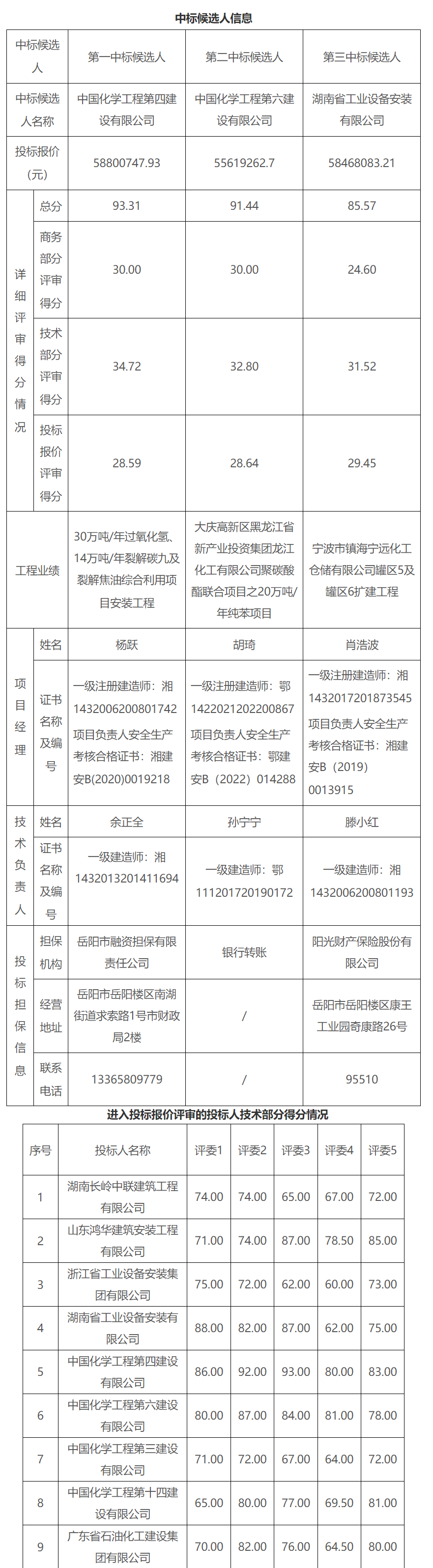 根据招标投标相关法律法规及招标文件的规定,湖南双阳高科(岳阳)电子级双氧水项目主体工程土建施工项目(第二次)评标工作已经结束,本招标项目评标办法采用“综合评估法Ⅱ”。评标委员会推荐了以下3名中标候选人(排序),现将相关信息予以公示。