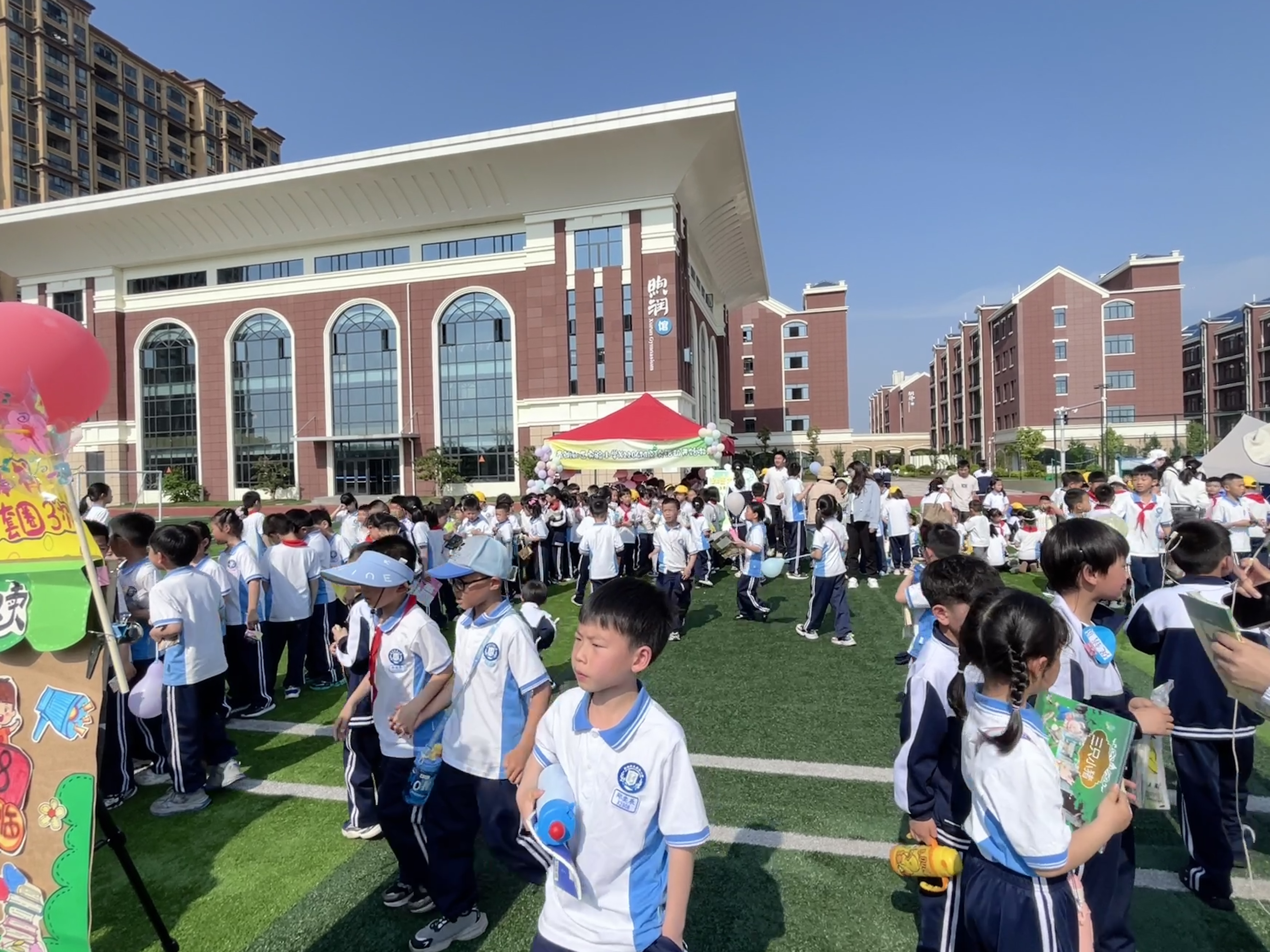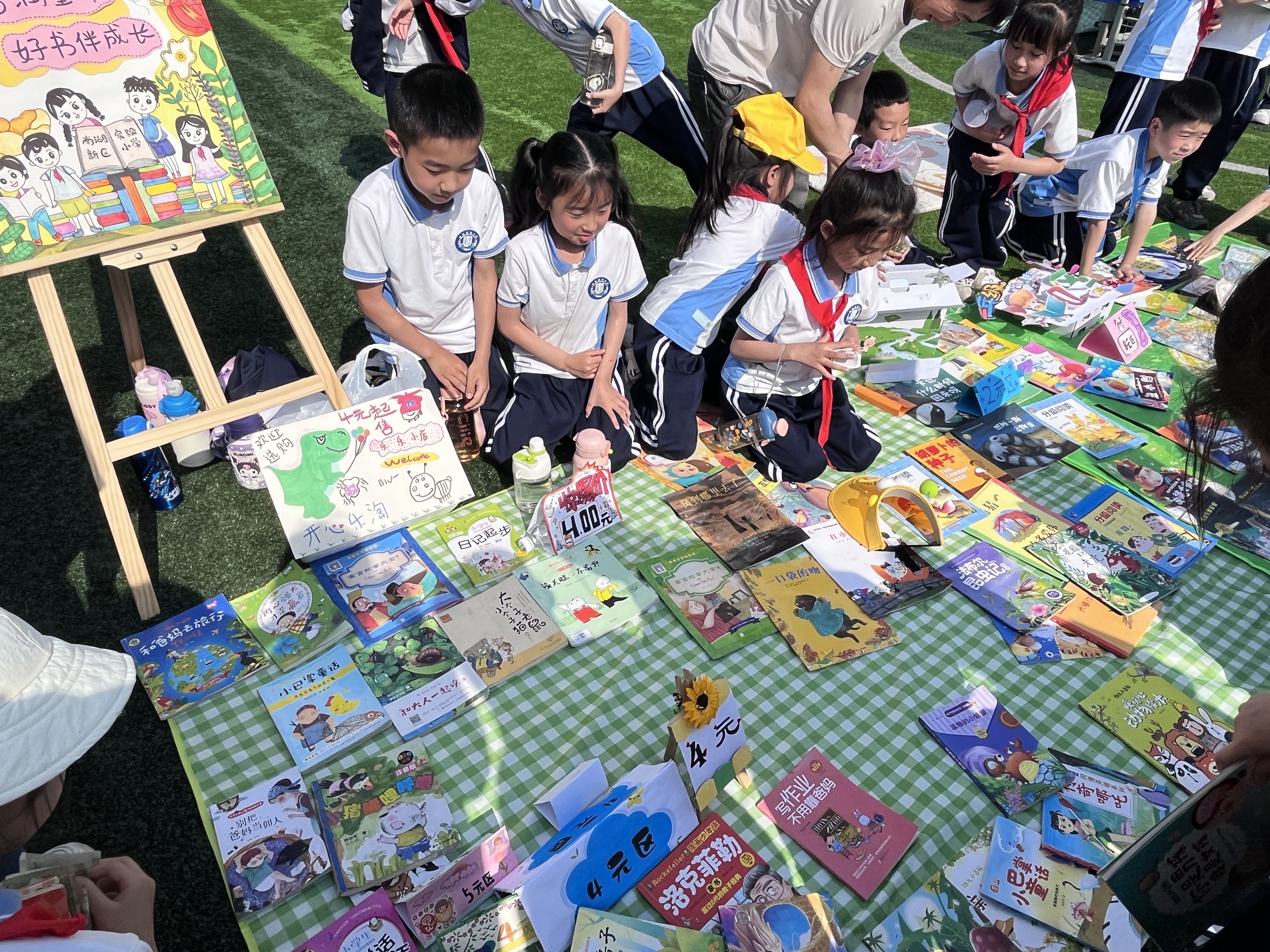 现场熙熙攘攘、氛围浓烈。孩子们自己手绘的各种别具匠心的宣传牌吸引了来往的“顾客”,“顾客”穿梭在各摊位间,寻找、交流、砍价、交易,争先恐后,脸上洋溢着“寻宝”的快乐与满足。小小“推销员”、“营业员”、“收银员”、“书记员”等个个忙碌不已。不少家长也到现场拍照录像,记录下精彩瞬间,同时也参与到“推销”和“抢购”的大军之中。此起彼伏的叫卖声、吆喝声在空气中回荡,交织成一首富有活力的校园进行曲。不到一小时,各“商铺”的图书已被抢购一空,孩子们手里捧的、手上提的都是心仪的“胜利品”。