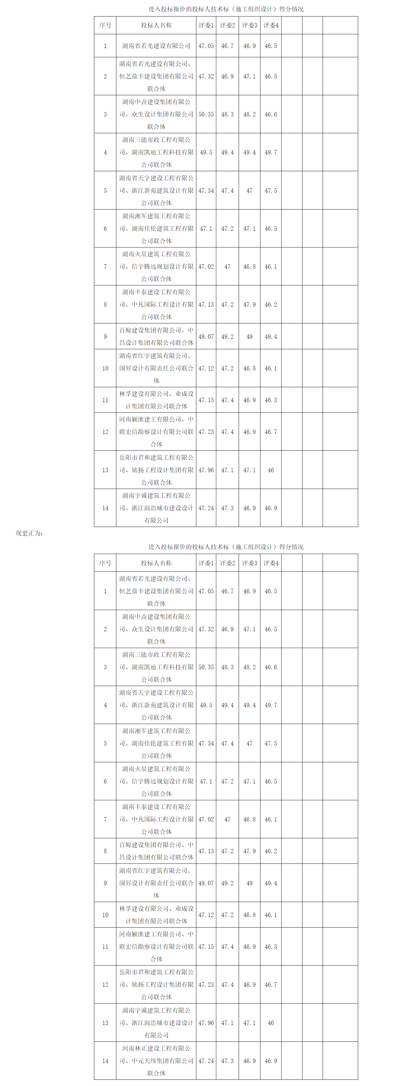 湖南天华工程项目管理有限公司受平江县城市建设投资服务中心的委托,对平江县冷链智慧物流园配套路网项目(西源路、青龙路)工程总承包进行公开招标,项目于2024年5月6日在《湖南省招标投标监管网》和《岳阳市公共资源交易网》发布了中标候选人公示,现对本项目的中标候选人公示作如下更正: