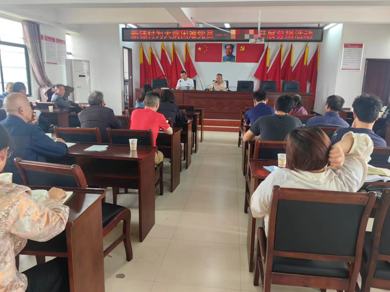 据了解,新铺村村民刘某是一名十分优秀的党员,同时也是保家卫国的退役军人。在平时,他充分发挥党员和退役军人的先锋模范作用,积极配合支持村内大小事务,特别是在年初冰冻雨雪恶劣天气中,主动除冰扫雪、砍青扫障,协同新铺村党总支全力保障群众安全,并且他还育有3个儿女,是家中唯一经济来源。在今年4月,刘某因脑出血进重症监护室,巨额医疗费用和家庭日常生活开支犹如两座大山,无情地压在刘某的家庭之上。新铺村党总支得知这一情况后,立即组织召开党员大会,号召辖区党员为其募捐,短短10分钟便募捐了5000余元,刘某的家人接过募捐款后不禁湿润了眼眶。