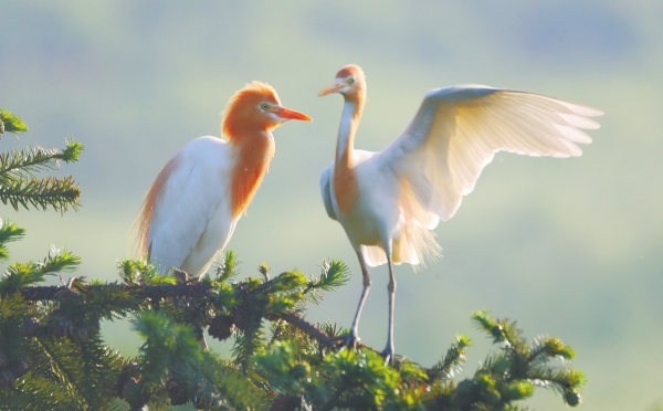 5月14日,衡东县高湖镇,鹭鸟在山林栖息。近年来,该县加大生态环境保护力度,湿地和山林绿化面积持续增加,吸引了不少鸟类到这里筑窝生存、繁育后代。