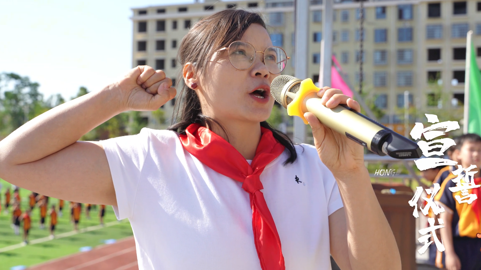 新队员们举起右手,紧握拳头,庄严地宣读誓词:“我热爱中国共产党,热爱祖国,热爱人民,好好学习,好好锻炼,准备着:为共产主义事业贡献力量!”他们的声音洪亮有力,充满了对未来的期待与决心。