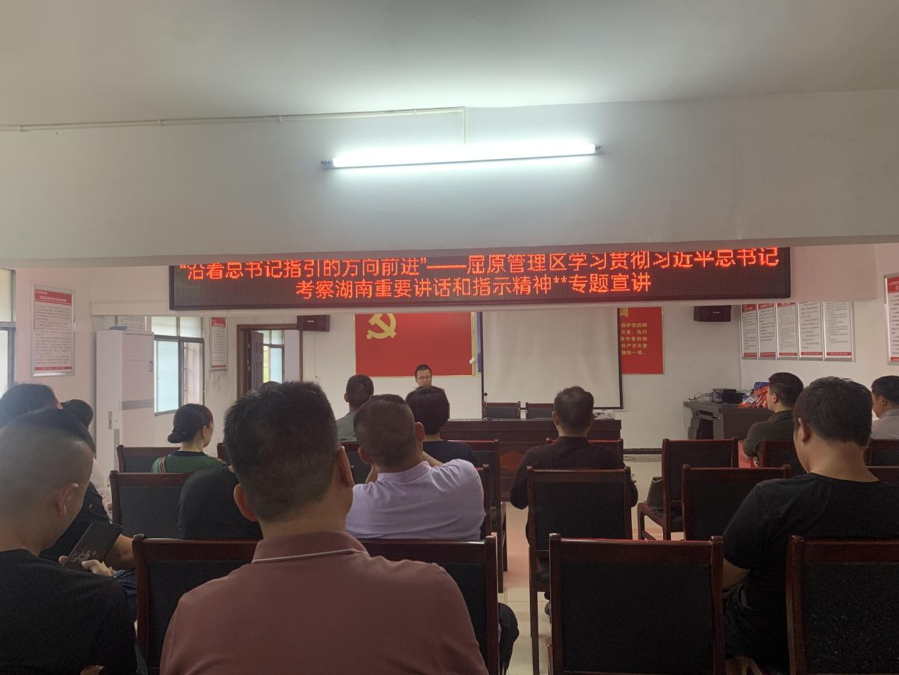 会议室里,理论宣讲员结合基层减负、产业发展、乡村振兴等工作和身边的事例,系统解读了习近平总书记考察湖南重要讲话和指示精神,为大家送上了一堂主题鲜明、内容丰富的专题宣讲。大家纷纷表示,通过此次宣讲,对习近平总书记考察湖南时的重要讲话和指示精神有了更加深刻的理解,今后将以实际行动为全面推进屈原高质量发展贡献力量。