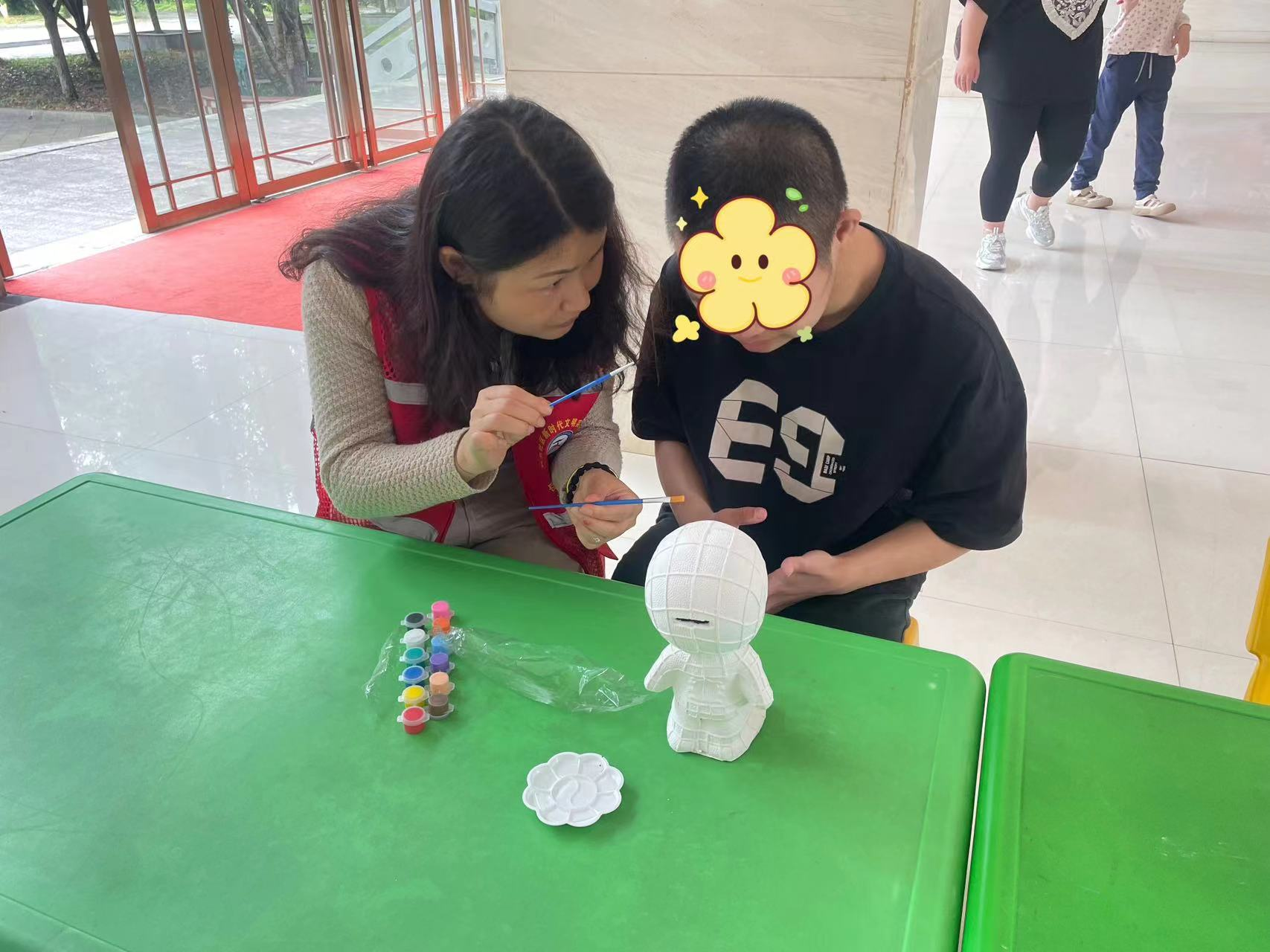 在手绘陶瓷娃娃的活动现场,和谐宣讲团郭亮社区分团团长候爷爷,为孩子们讲述郭亮叔叔的革命故事,听完故事的孩子们,又在志愿者的帮助下,在一个个陶瓷娃娃上绘制出自己心中的“英雄”。