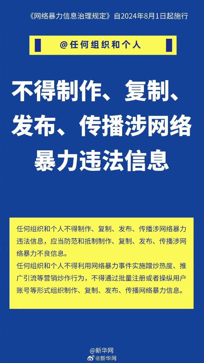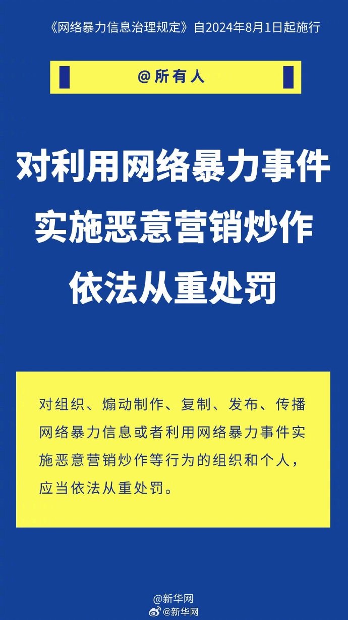 6月14日,国家互联网信息办公室联合公安部、文化和旅游部、国家广播电视总局共同发布《#网络暴力信息治理规定#》,该规定自2024年8月1日起施行。