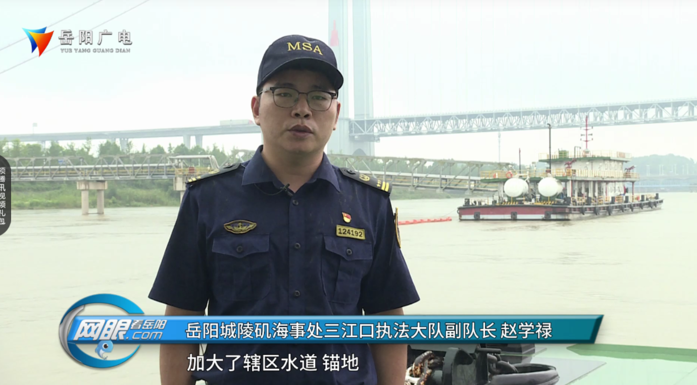 岳阳城陵矶海事处三江口执法大队副队长 赵学禄:我们还运用无人机海巡艇和智慧监管系统等...加大了辖区水道、锚地、码头的巡航力度 引导船舶有序通航。下阶段我们将密切关注水位变化情况,必要时开展重点水域的现场盯防驻守,全力保障辖区平安度汛。