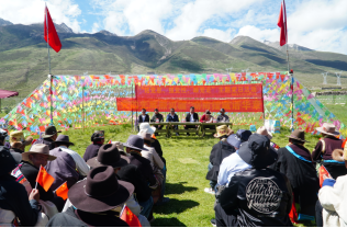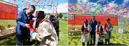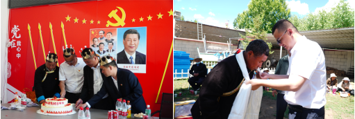 蓝天白云,高山绿地,鲜艳的五星红旗迎风飘扬。在增期乡支巴村,党员干部群众齐聚一堂,通过举行新党员入党宣誓、为老党员颁发“光荣在党50年”纪念章、听优秀党员代表分享入党故事、慰问困难党员、健康义诊等形式为党庆生。现场,大家弹着扎木聂、唱着红色颂歌、跳着欢快藏舞,将活动推向高潮。手捧“光荣在党50年”纪念章的党员罗布占堆激动地说 :“没有共产党就没有幸福的生活,我们会永远听党话、感党恩、跟党走。”
