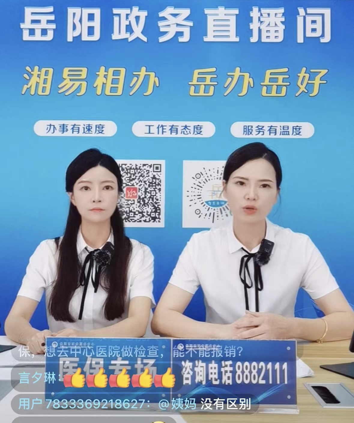 “医保政策进万家,医保服务暖人心,大家好,我们今天政务直播的主题是2024年医保政策和经办服务...”。6月28日,岳阳医保政务直播专场在市政务中心政务直播间开播,此次直播同步开通抖音、视频号等新媒体平台,通过借助政务服务直播平台开启线上互动直播可视化服务模式,实现广大市民与医保工作人员线上互动交流,让医保政务服务更贴心、更暖心。