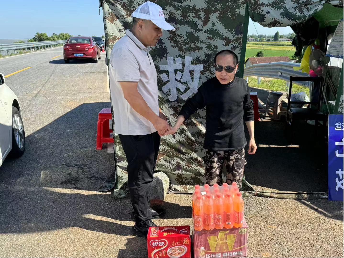 岳阳广电全媒体7月11日讯(通讯员/邓亚奇)近日,一辆满载爱心物资的拖车开到了屈原管理区营田镇三洲村防汛责任点,这是村民王勇辉为防汛一线干部送来了矿泉水、八宝粥、饮品等慰问物资。