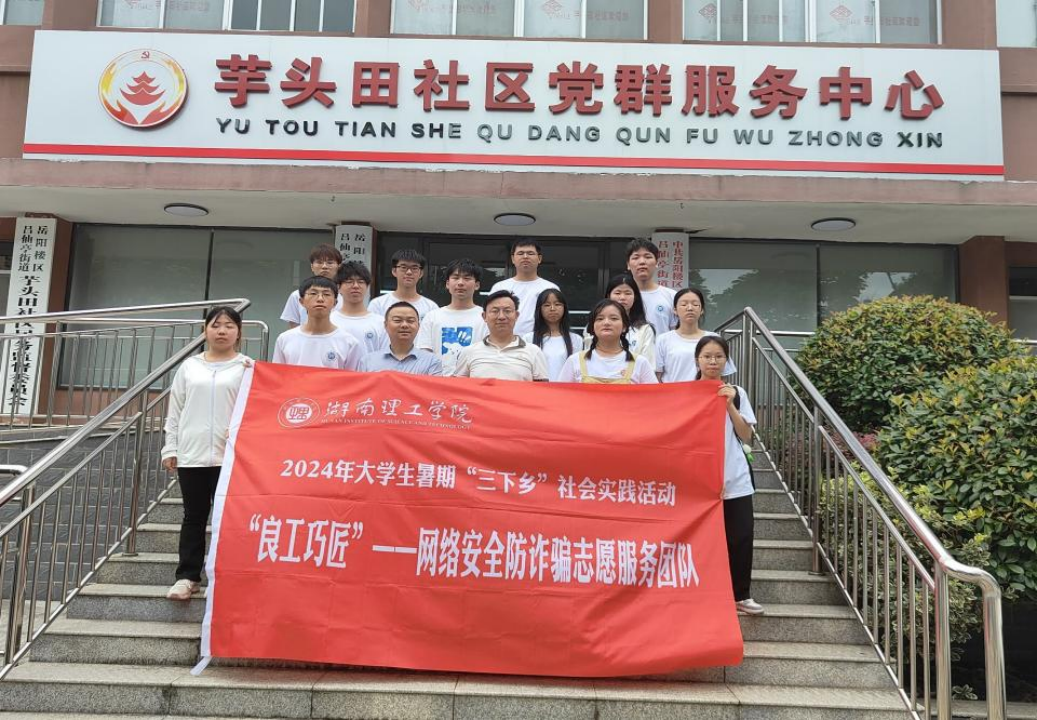 岳阳广电全媒体讯(通讯员 卓小倩)为提高居民的网络安全意识,共同打击电信诈骗,近日,湖南理工学院“良工巧匠”志愿者服务团队在该校信息中心指导老师的带领下,赴岳阳楼区郭亮社区和芋头田社区开展暑期“三下乡”社会实践活动。