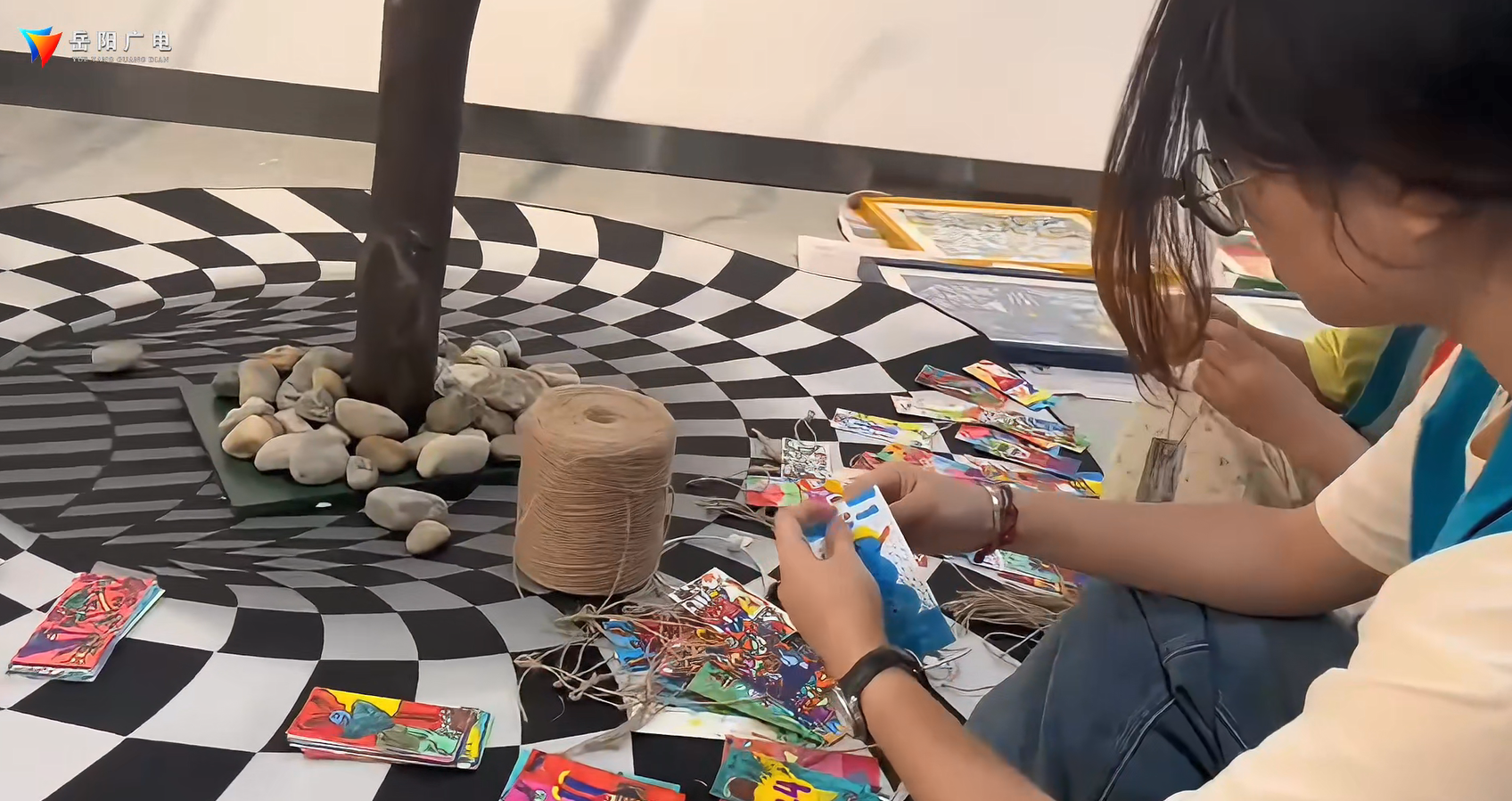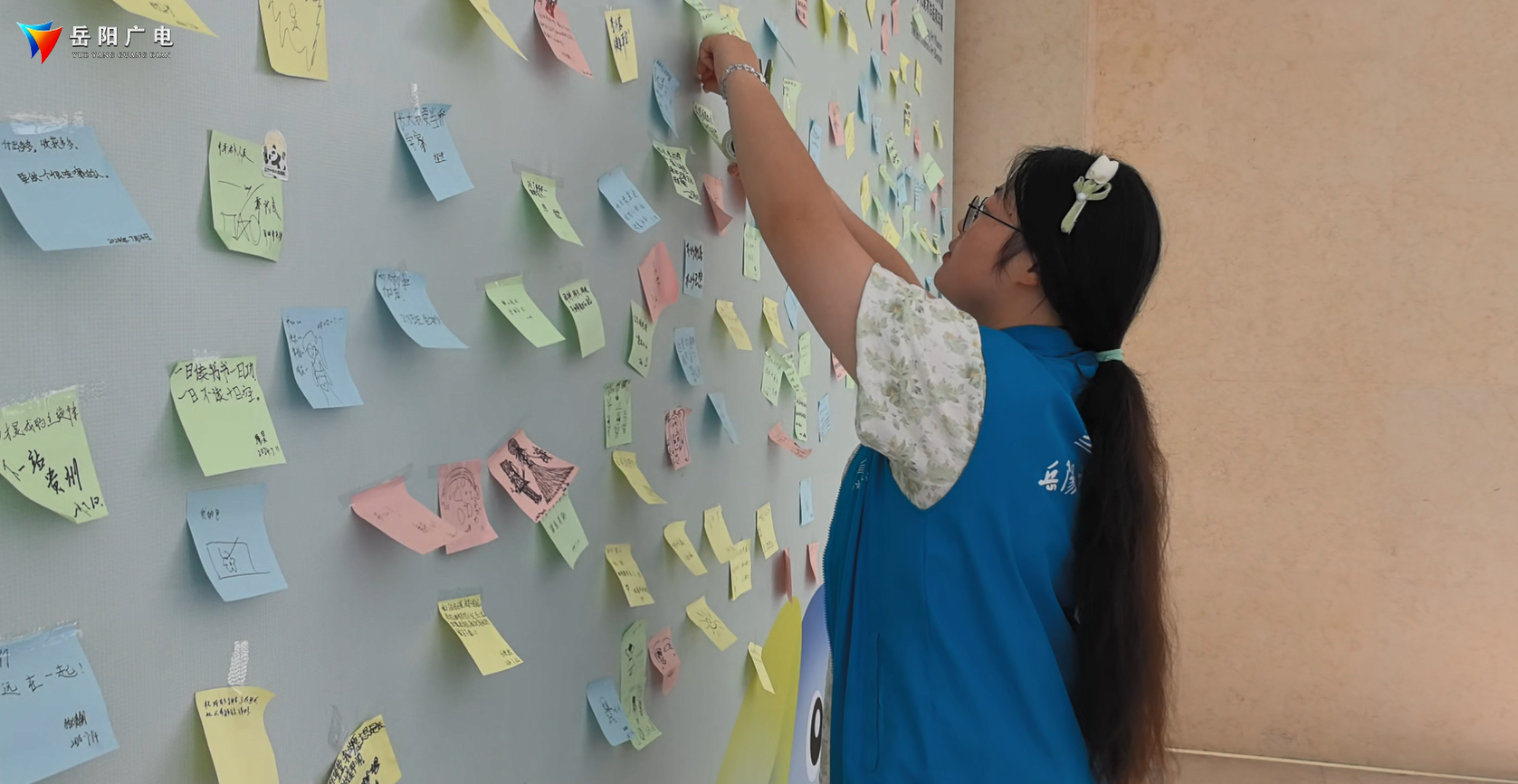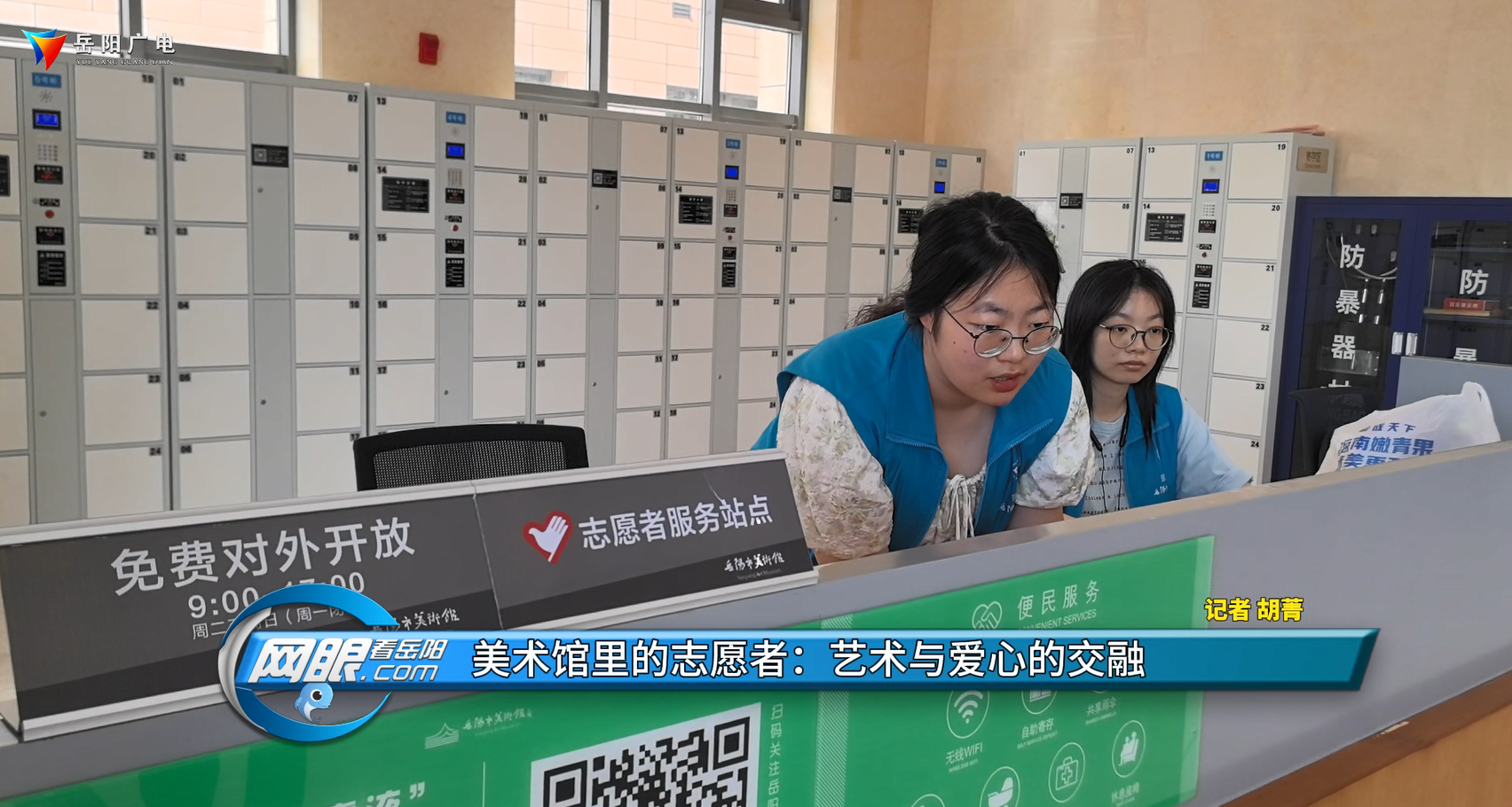 岳阳市美术馆志愿者 李文静:我日常主要负责前台接待,提醒和协助观众存包然后维护展厅的秩序以及收件、’布展,画展的开幕式的工作我们都有参与。