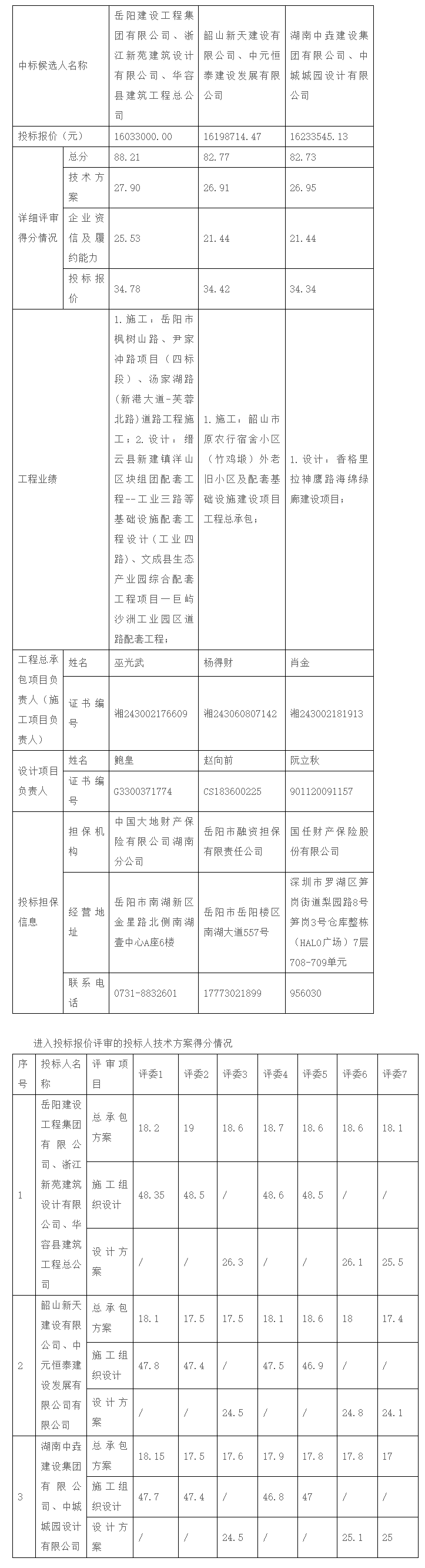 根据招标投标相关法律法规及招标文件的规定,华容高新区三封工业园水厂提质及供水管网配套项目工程总承包评标工作已经结束,本项目采用综合评估法的评标办法,评标委员会推荐了以下3名中标候选人(不排序),现将相关信息予以公示。公示期2024年7月23日至2024年7月25日。