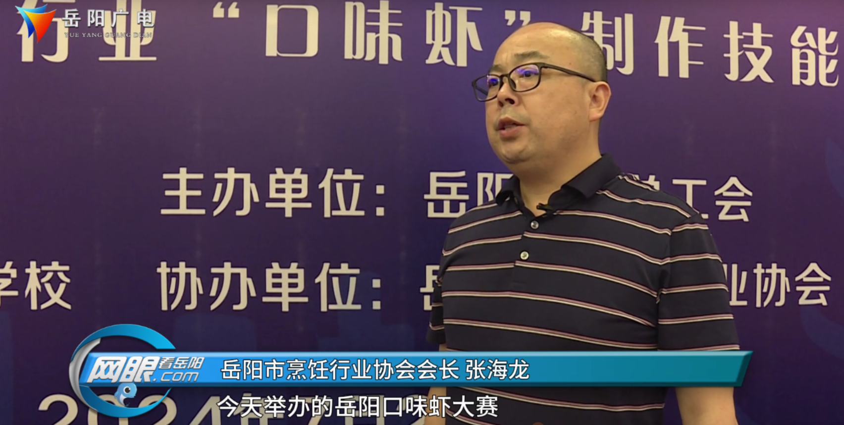 岳阳市烹饪行业协会会长 张海龙:我们岳阳口味虾品质好味道好,是“岳阳一桌菜”的其中重要的一道菜,今天举办的岳阳口味虾大赛,更加推动了岳阳餐饮,龙虾产业经济出圈出湘发展,技能大赛体现的是,大家的烹饪技能带来广大人民舌尖上的幸福,引来四面八方打卡。