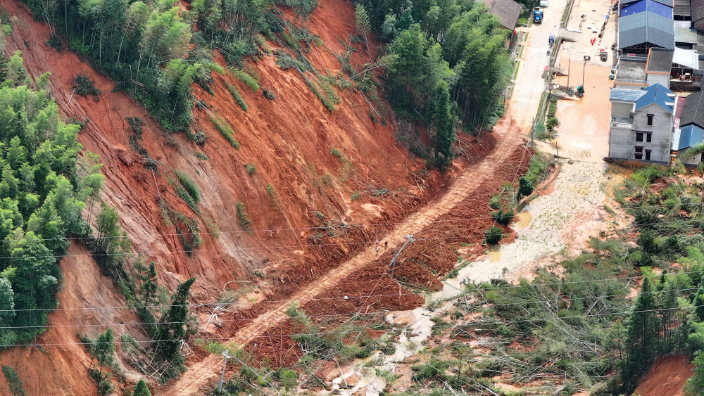 新华社长沙7月31日电(记者谢奔、张格)烈日、高温,塌方、堵路。7月30日上午,通往湖南省资兴市八面山瑶族乡的主干道——省道S344线何家山至八面山段正在紧急抢通。