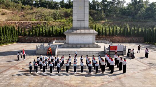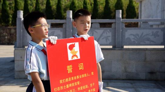 同学们在高大的革命烈士纪念碑下,齐声诵读《今天,以国之名,向烈士致敬》;在鲜红的队旗下,郑重宣誓;在青松苍柏间高唱《中国少年先锋队队歌》。声声嘹亮、字字千钧,表达了新时代少年,坚定继承革命先辈的遗志,好好学习,报效祖国的决心。