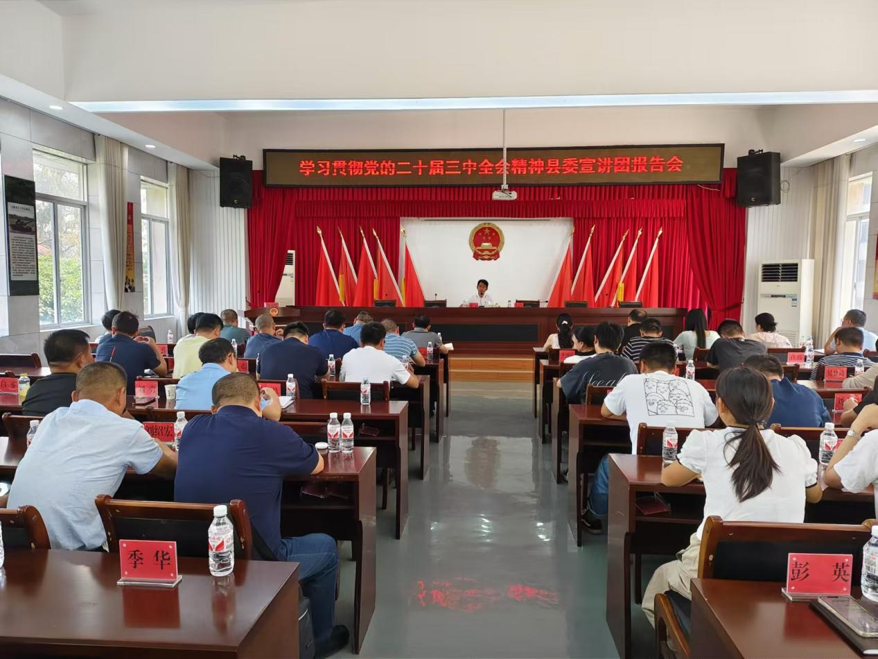 岳阳广电全媒体讯(记者/蔡群 通讯员/郭哲)9月27日,华容县委常委、宣传部长、统战部长方洁赴治河渡镇宣讲党的二十届三中全会精神,70余名党员干部和群众参加会议。