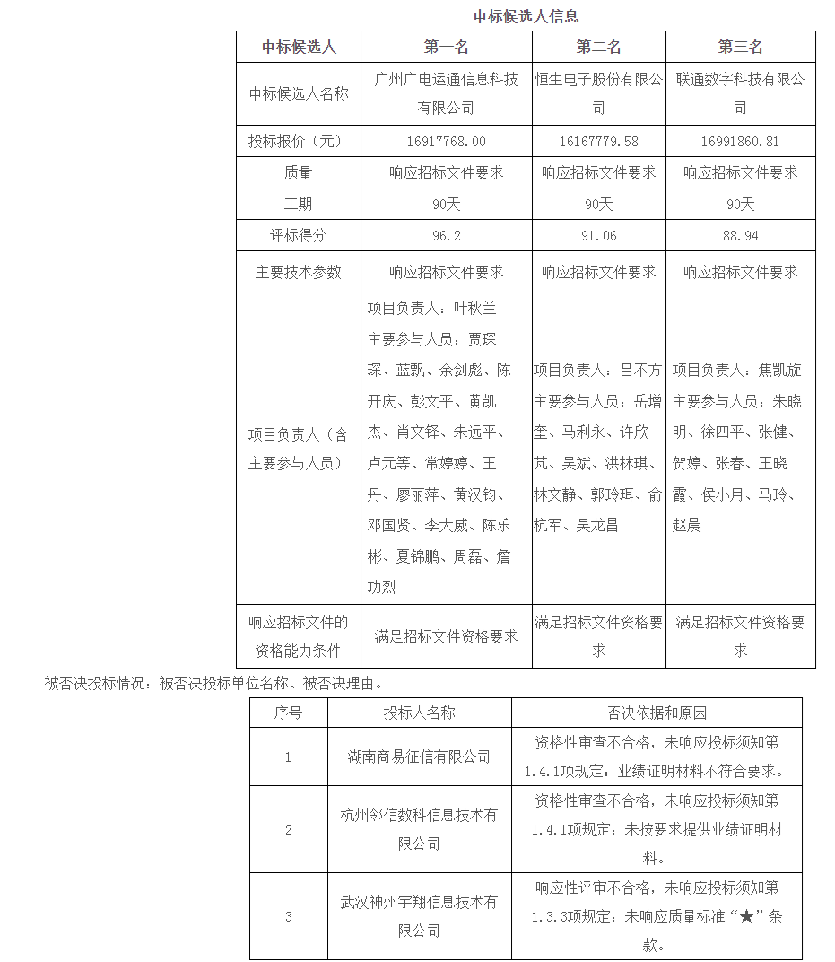 公示期3天,公示期2024年11月04日至2024年11月07日。公示期内如有异议,请根据《湖南省招标投标活动投诉处理办法》湘发改法规规〔2024〕419号的有关规定,向招标人或招标代理机构书面反映;公示期届满时,对以上中标候选人若无异议,招标人即确定排名第一名的中标候选人为中标人。