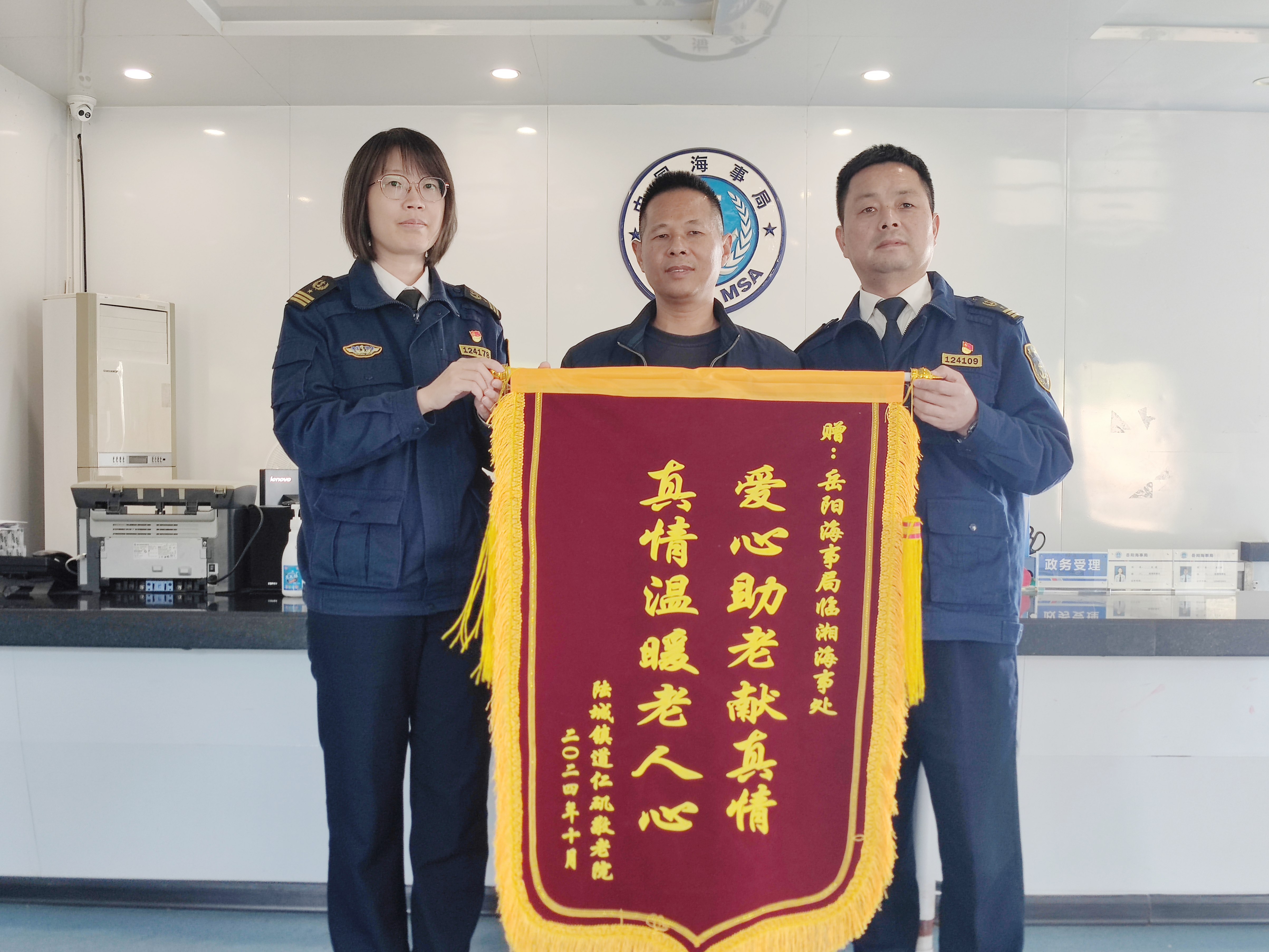 岳阳广电全媒体讯(通讯员 李开栋)近日,岳阳临湘海事处收到了来自岳阳市云溪区陆城道仁矶社区敬老院“爱心助老献真情,真情温暖老人心”锦旗,对该处坚持“敬老爱老”志愿活动表达感谢,这既是外界对其志愿服务肯定褒奖,也是该处干部职工坚持志愿活动,主动服务社会的一个缩影。
