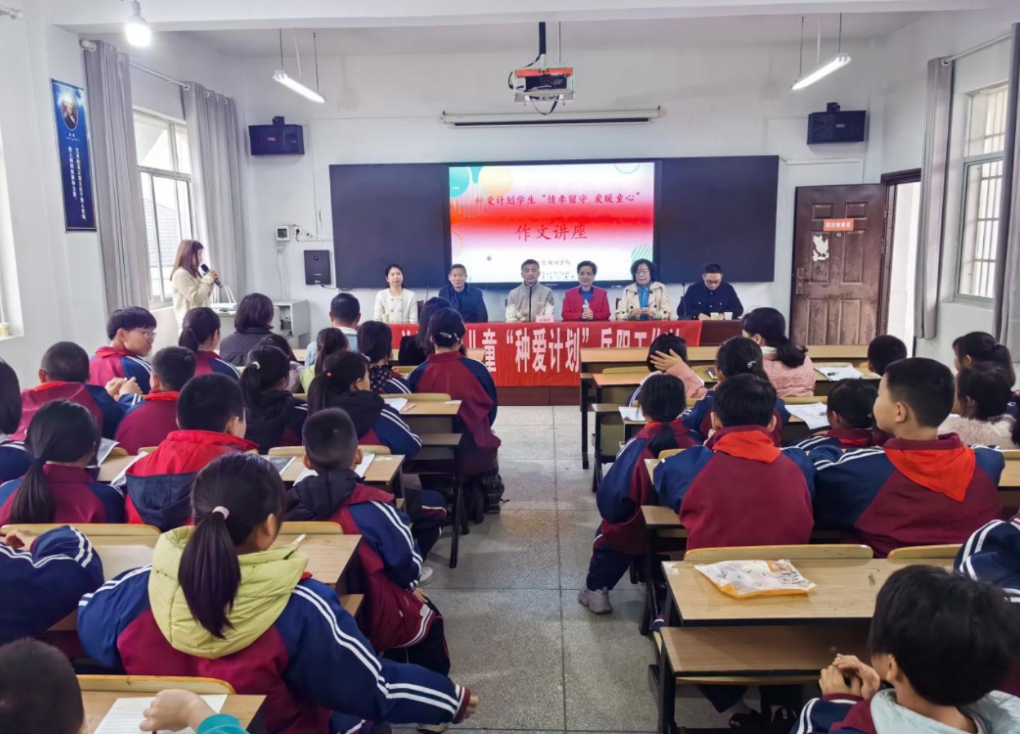 11月24日上午,关爱留守儿童种爱计划岳阳站特别邀请朝阳小学高级教师,市专家协会专家,市婚姻家庭研究会讲师方西河老师来到种爱计划学校湖洲学校开展《写好作文不用怕》的专题作文讲座,湖洲学校40余名留守儿童和爱心妈妈一起参加学习。