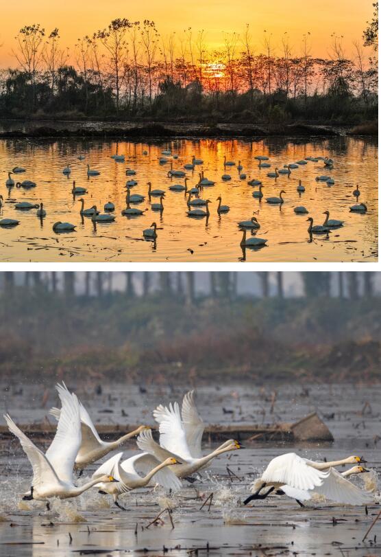 今年小天鹅的迟到,可能与气候有关,和我一样在等待小天鹅归来的人都很急迫,接了很多电话都在问“小天鹅来了么”,我问了很多专家,据说是黄河尚未冰封,长江气候转暖,导致小天鹅比往年迟归,并且今年小天鹅落脚的位置与往年也稍有变化。不管怎样,小天鹅总算来了,也还是落脚在东古湖景区。