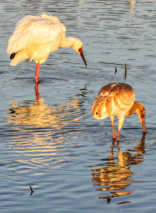 随着各类越冬候鸟在东古湖聚集,我们先后在东古湖周边发现大批黑翅长脚鹬、反嘴鹬、鹤鹬、白鹤、白骨顶鸡、凤尾雁鸭、豆雁、白琵鹭、鸬鹚、丝光椋鸟等珍稀鸟类,在凤凰乡凤凰村田野也发现数量不多的灰鹤,据初步估算,鸟类总数量应该在20000羽以上,东古湖已经成为洞庭湖区享有盛名的最佳冬季观鸟点。