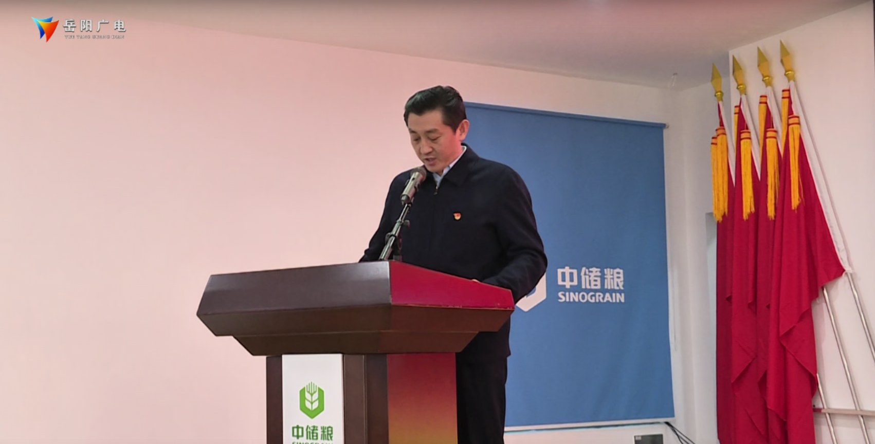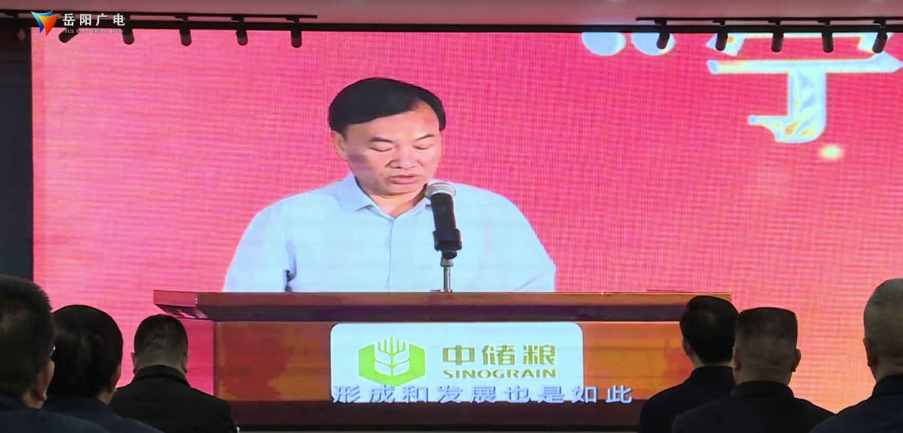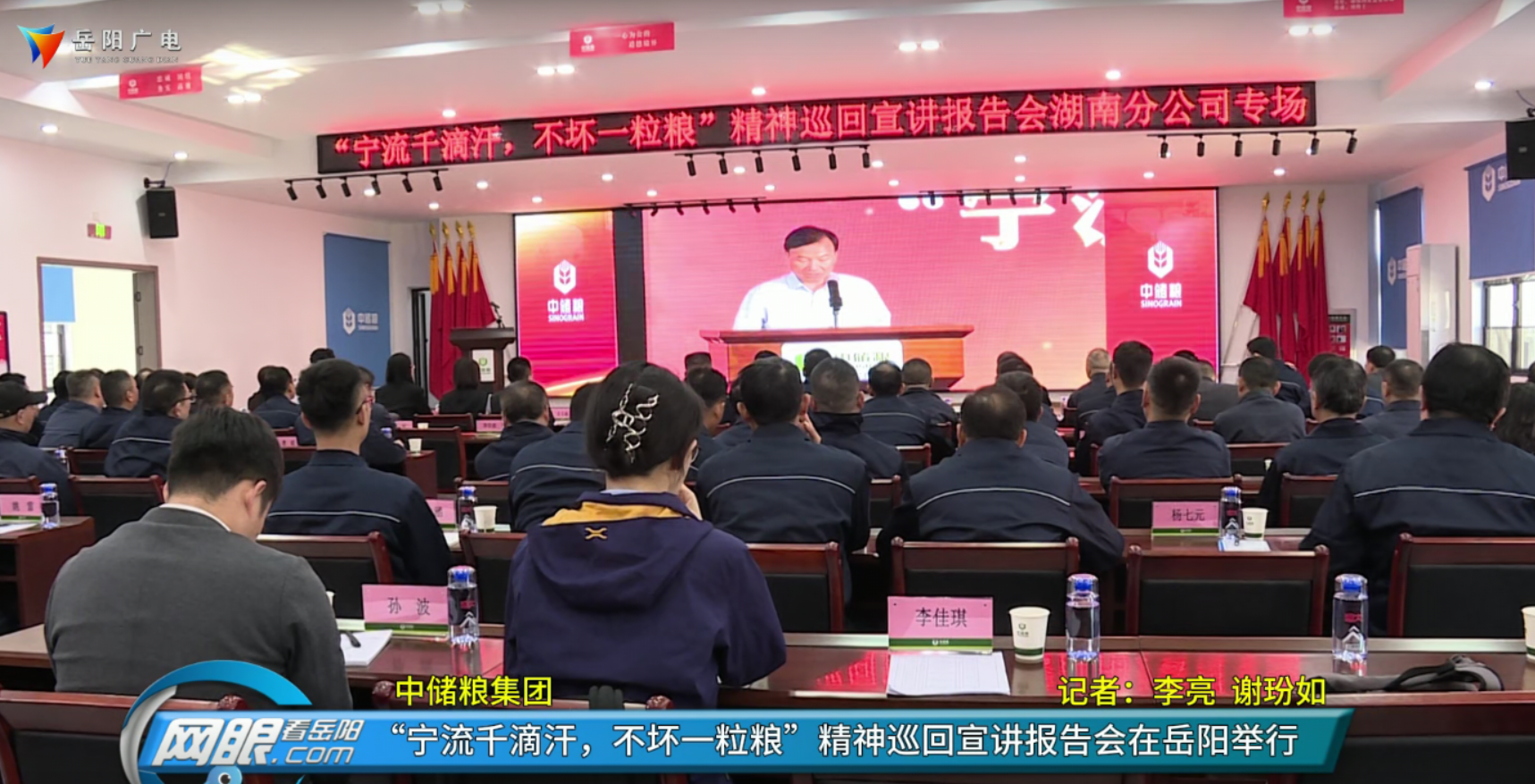 岳阳广电全媒体讯(记者:谢玢如 通讯员:孙忠 李佳琪)11月29日,中储粮集团公司“宁流千滴汗,不坏一粒粮”精神巡回宣讲报告会在岳阳直属库举行。湖南分公司党委副书记、副总经理翟金伟出席活动,中储粮湖南分公司辖区1400余名干部员工以现场或者观看线上直播的方式参加活动。