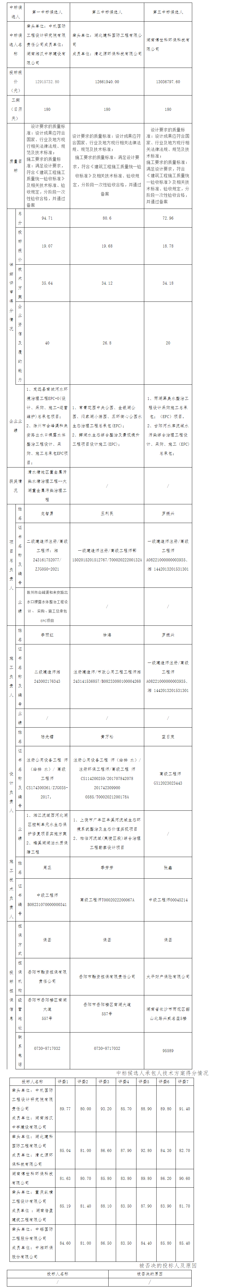 湖南普兴工程咨询公司受岳阳市南湖新区湖滨街道办事处的委托,代理岳阳市南湖新区洞庭湖域内湖月形湖水环境治理工程总承包招标,2024年12月04日09时30分(北京时间)在岳阳市公共资源交易中心进行了公开开标,在岳阳市生态环境局南湖新区分局监督下,依法组建的评标委员会按照招标文件确定的评标原则和评标办法进行了细致的评审,并推荐本项目中标候选人排名如下: