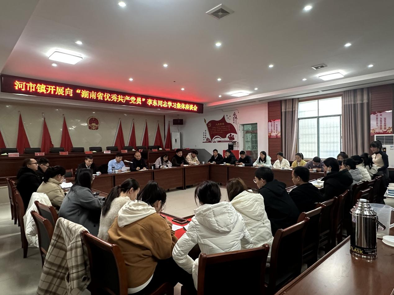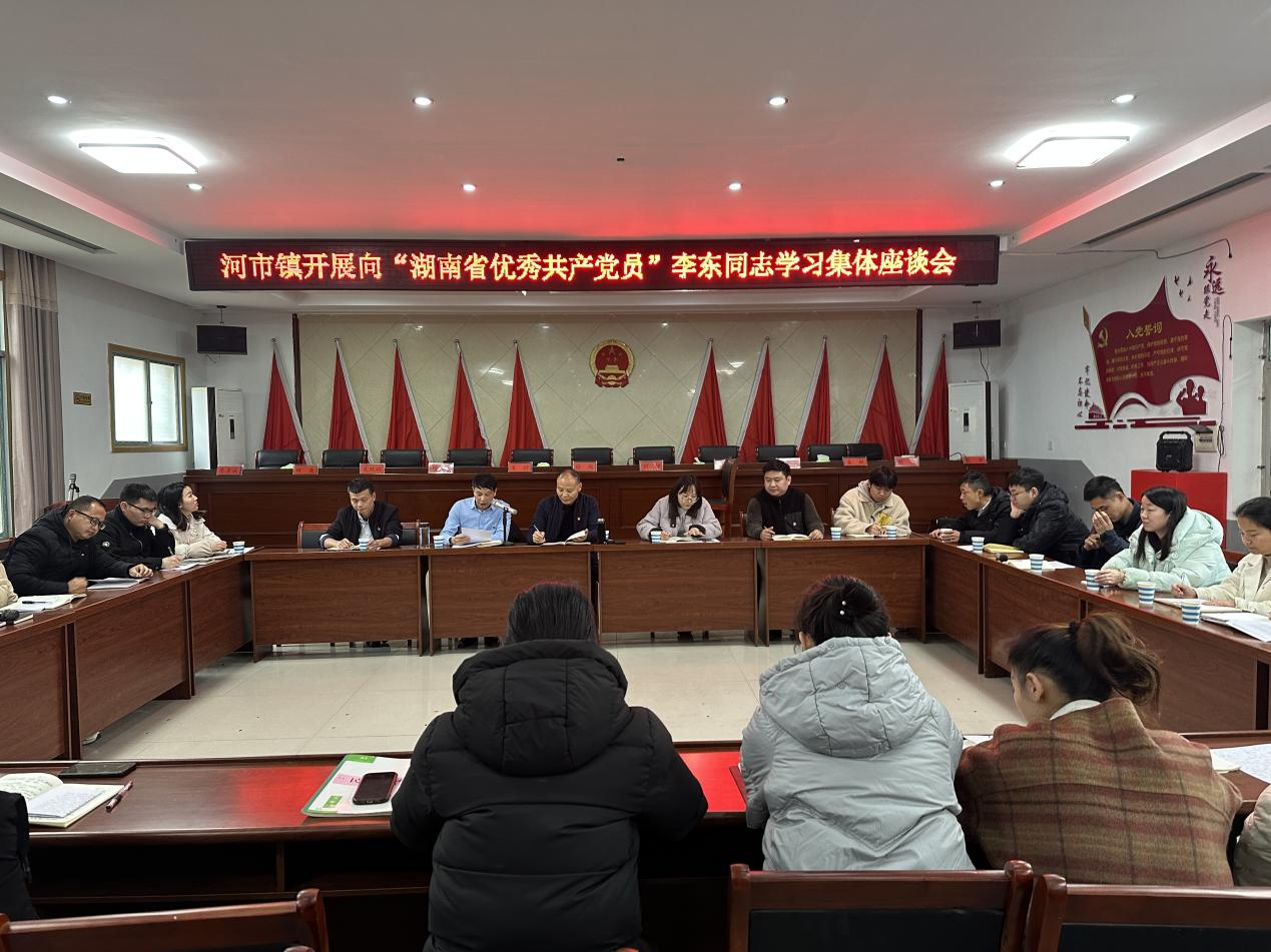 座谈会上传达了《关于开展向“湖南省优秀共产党员”李东同志学习的通知》,介绍了李东同志的生平、主要事迹,重点呈现他对党忠诚、敬业奉献、为民服务等方面的突出表现,引导青年干部们学习榜样精神、汲取前行力量,争做像李东同志一样“平常工作靠得住、关键时刻站得出、危难关头勇敢上”的好干部。同时,向大家介绍了河市镇两名“岳阳好人”的优秀事迹,号召青年干部向身边好人学习。